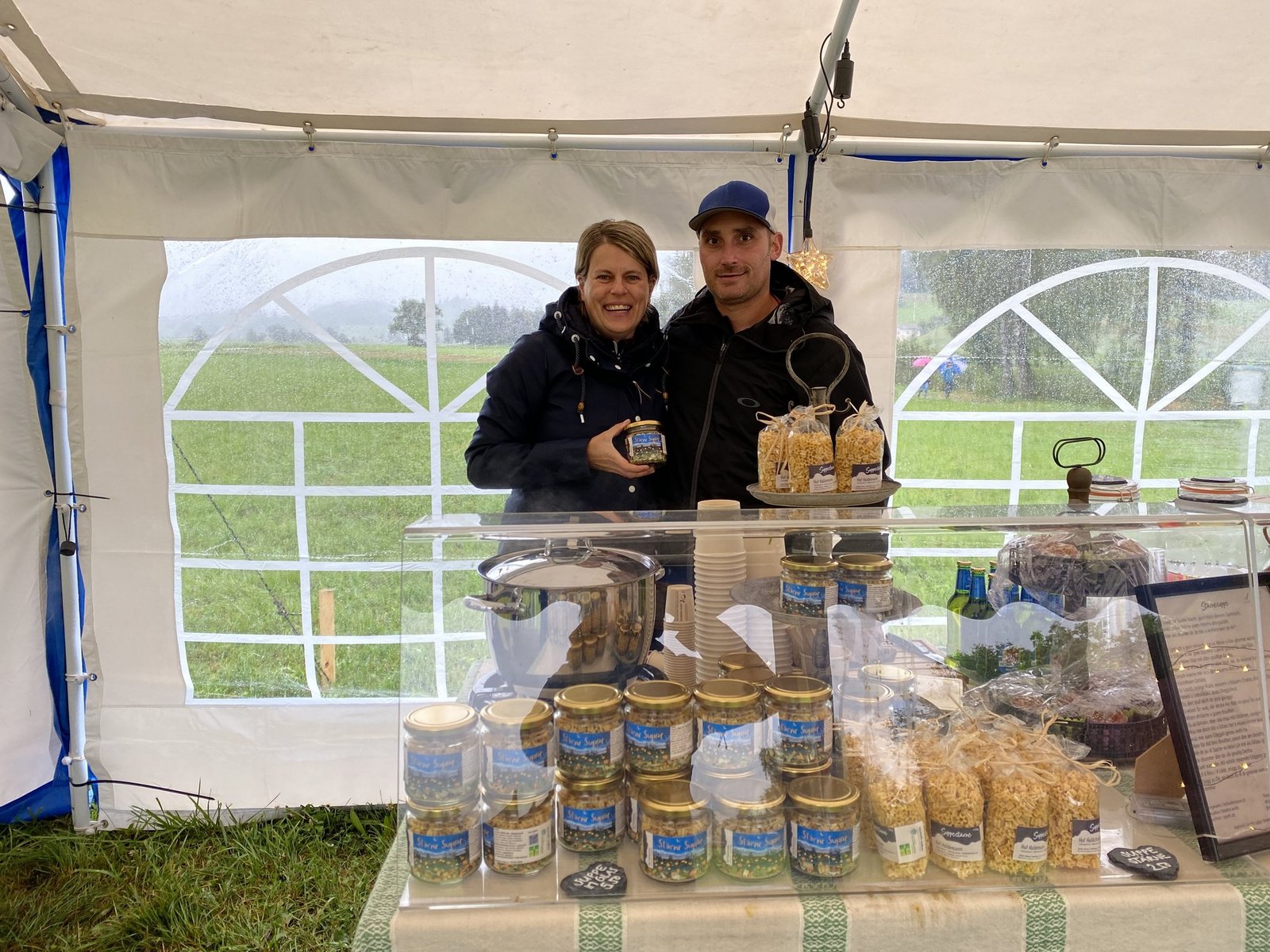 Für Aline Gerber in Kaufdorf BE begann der Sonntag um 4.30 Uhr: Über Nacht hatte der Wind die Zelte umgerissen, den sie, ihr Partner Christoph Messerli und das Helferteam für den «Tag der offenen Hoftüre» aufgestellt hatten. «Wir mussten kurzfristig umdisponieren und an einen anderen Standort zügeln», sagte die Agronomin, die mit Christoph Messerli den «Hof am Stutz» in Kaufdorf BE führt.