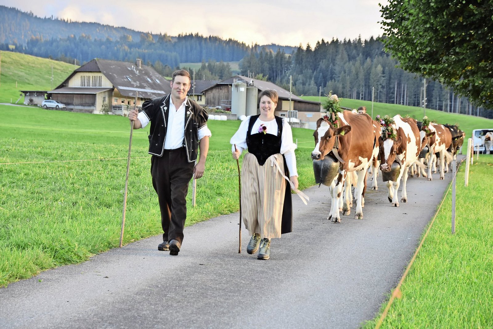 Von ihrem Heimbetrieb hörte man die Kuhherde schon von weitem kommen. Das Treichel- und Glockengeläut klang weit über den Knubel hinaus. Vorneweg am Zügeltross kamen zuerst die Kinder mit den Ziegen. Dann folgte die Kuhherde und am Schluss kam noch ein herrliches Pferdegespann mit Wagen.