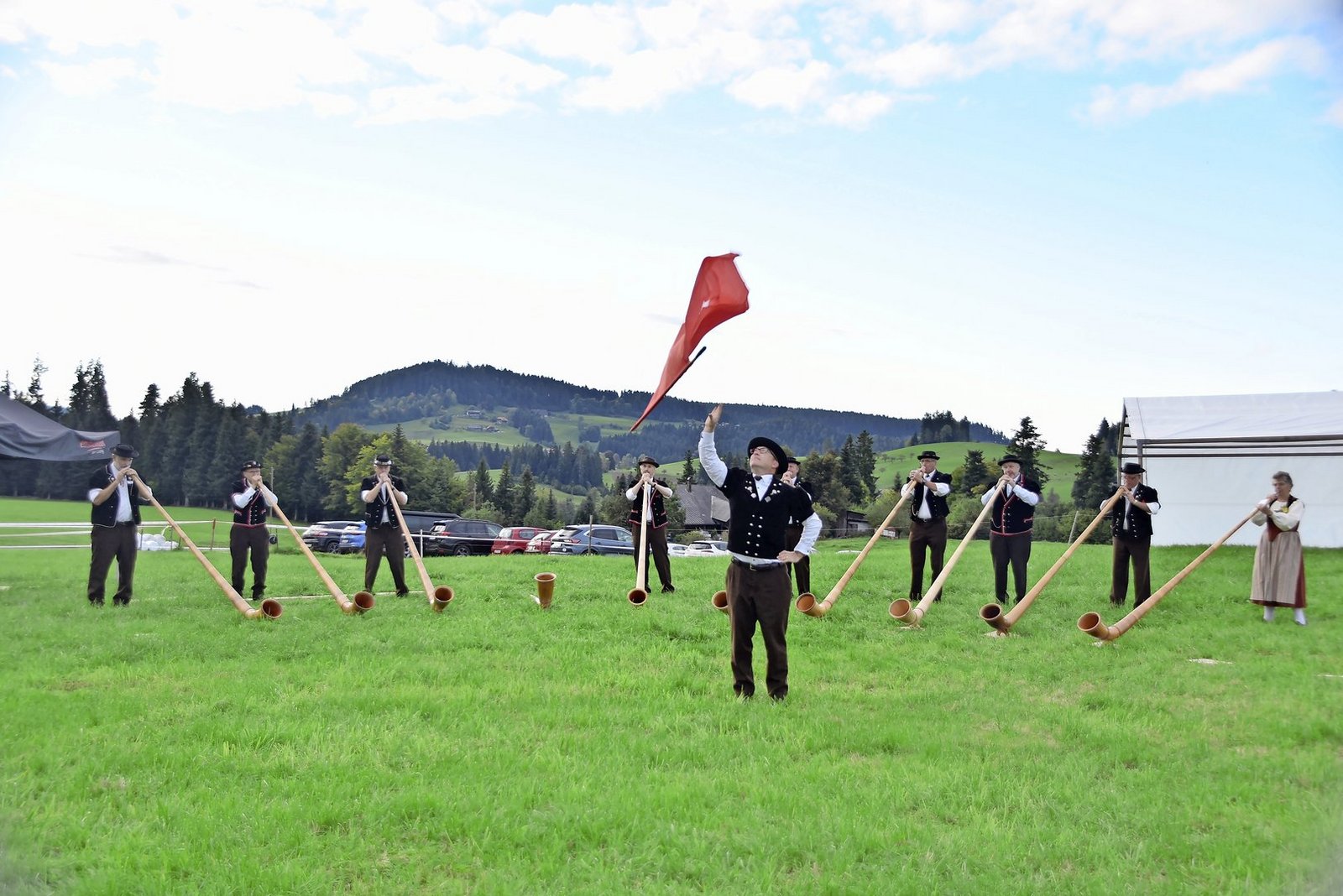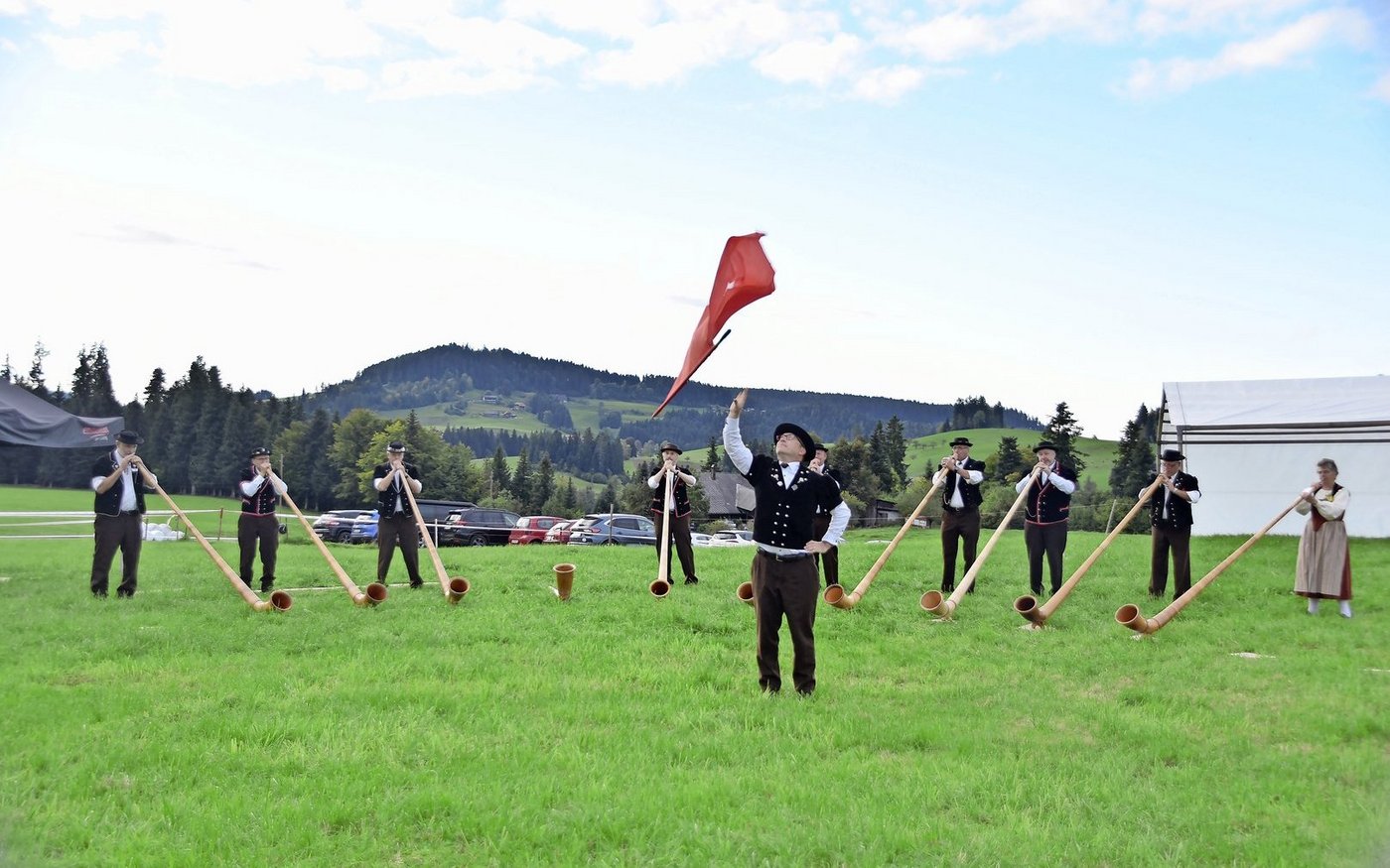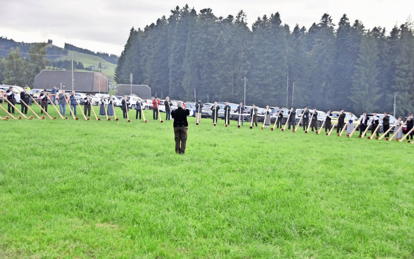 Ans Alphornfest auf dem Knubel kamen sogar Interessierte aus Norwegen, Deutschland und England. Am Samstag gab es verschiedene Vorträge, bis dann um 19 Uhr der Gesamtchor mit 72 Alphornbläsern und der Alpabzug stattfanden. «Am Sonntag, am Wettblasen, durften wir noch einmal viele Besucher empfangen», so Walter Bachmann. Dabei wurden insgesamt 45 Vorträge juriert. «Das schöne Wetter hat sicher zum Erfolg beigetragen», meint Bachmann.