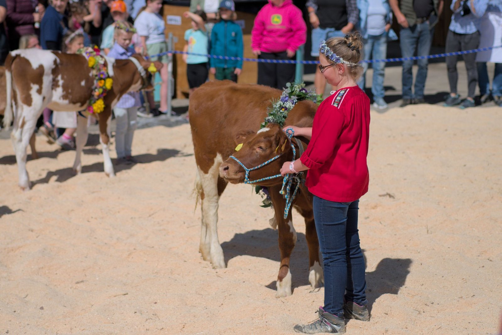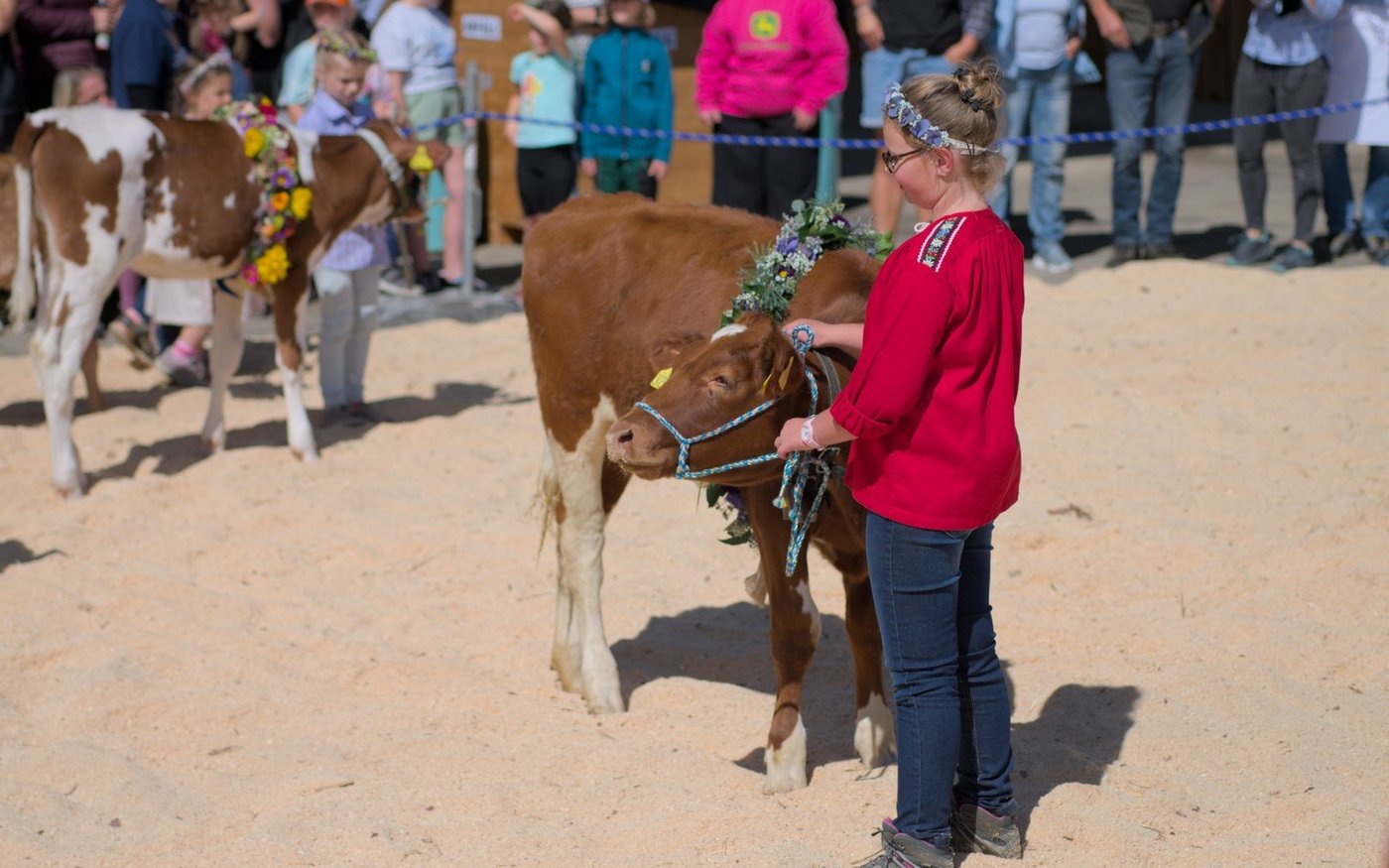 Ein Publikumsmagnet war auch der Kälberwettbewerb, moderiert von Nadja Lerch, Leiterin Agrar bei der Landi Reba. Die Kleinsten unter ihnen hatten sichtlich Freude, ihre wunderschön geschmückten Tiere den vielen Besucherinnen und Besuchern zu präsentieren.