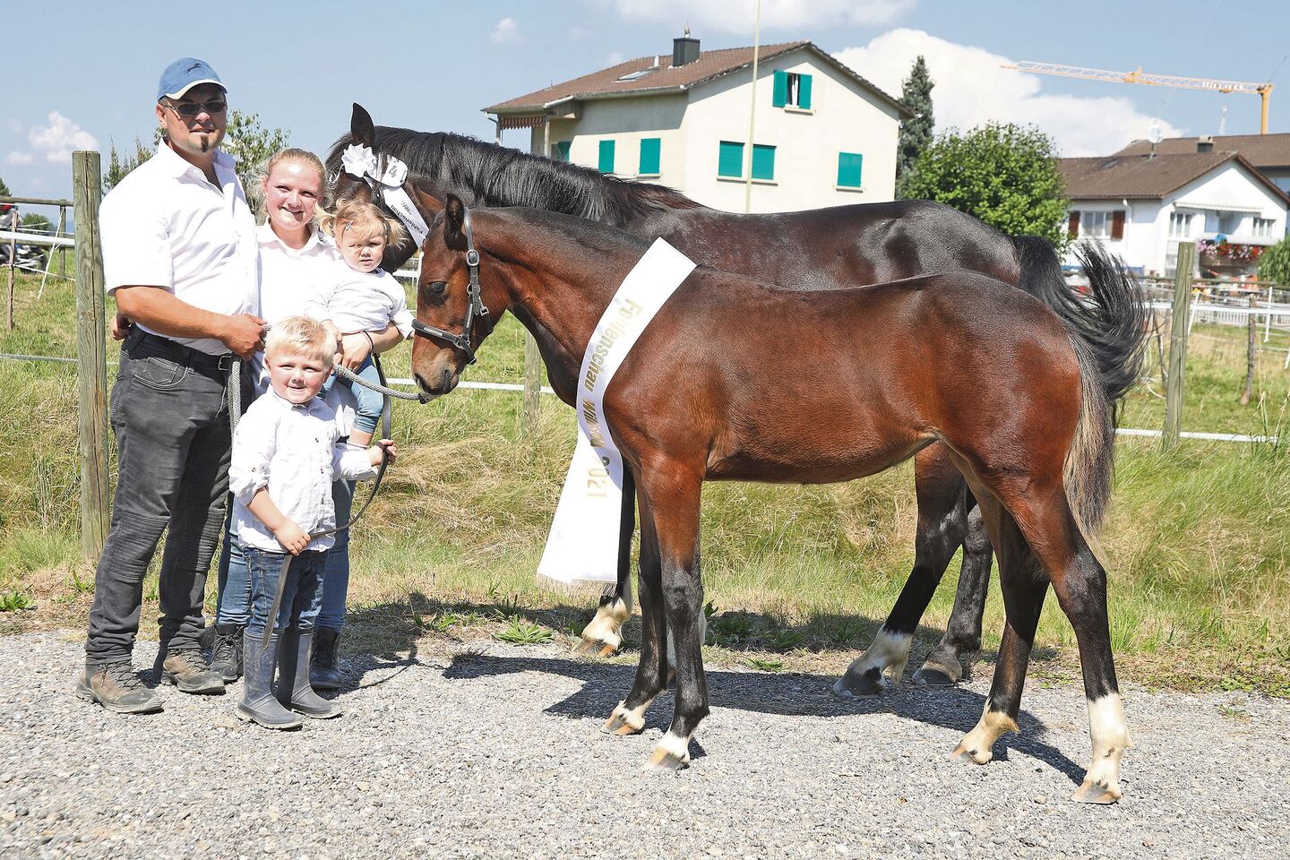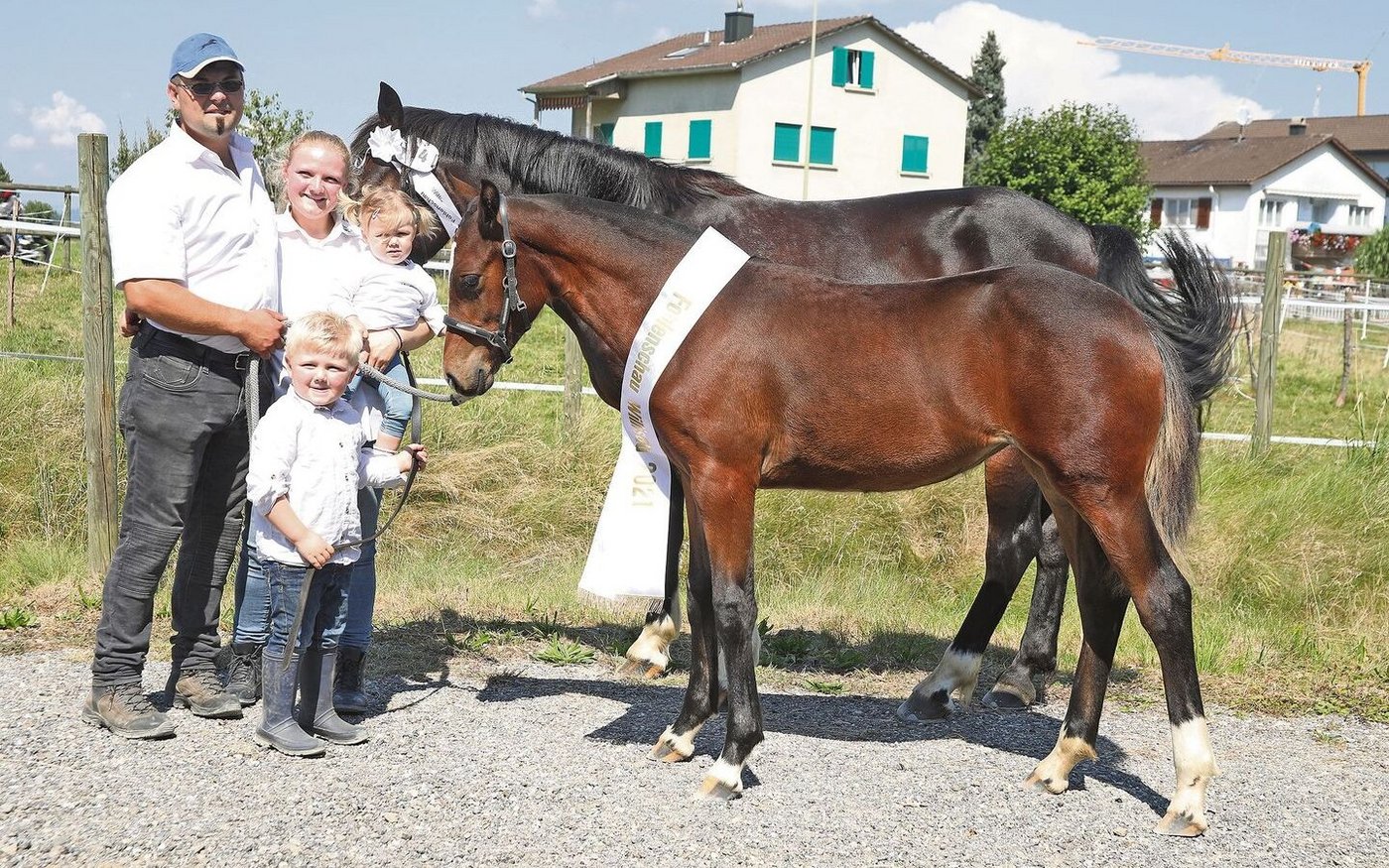 Mit der Anzahl der gezeigten Freibergerfohlen war Präsident Toni Isaak mehr als zufrieden. «Es waren wirklich gute Fohlen vor Ort,» meinte der Rassenexperte. Im Hengstrappel mit sieben Fohlen stand ganz vorne Aladin (Nahel des Aiges) von Hans Birrer aus Hofstatt, ein kompaktes und typvolles Fuchsfohlen, das mit 888 die Halle verliess, zusammen mit seinem überglücklichen Züchter. Rang zwei ging an Eskimo (Elogeur) von Konrad Isaak aus Roggliswil, der vor allem mit einem fulminanten Gang bestach, was ihm die Noten 879 einbrachte und zudem den Spezialpreis «Gangsieger». Zwei Stuten gab es im Rappel zu bewundern, vorneweg Aruba (Hannibal vom Meierhof), welche aus dem Stall von Bernet Curdin aus Fischbach kommt und die Noten 879 erhielt, zudem den zweiten Spezialpreis «Gangsieger». Den zweiten Rang belegte Vita (Hamlet des ronds Prés) von Kurt Birrer aus Menznau, punktiert mit 768.