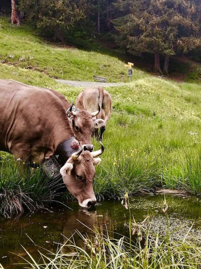 Dabei tragen die meisten Kühe auch noch eine schöne «Treichel» mit hoch, die zwar schön klingt und aussieht, aber doch ziemlich schwer zu tragen ist.