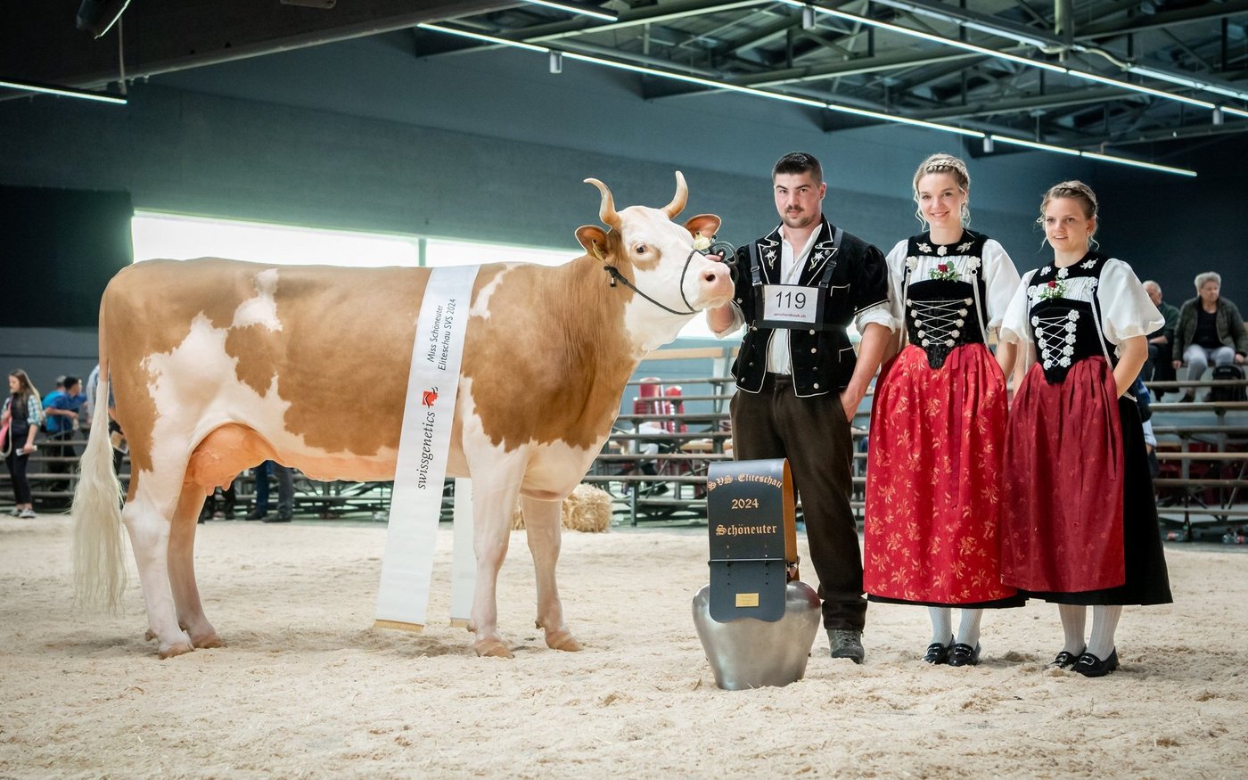 Bei wahrlichem Kaiserwetter führte die Schweizerische Vereinigung zur Erhaltung und Förderung der reinen Simmentaler Fleckviehrasse, kurz SVS, am vergangenen Sonntag ihre Eliteschau durch. Im Zentrum stand, wie OK-Präsident Martin Liechti betonte, die Doppelnutzung Fleisch und Milch der Rasse. So wurden nicht nur Schöneuter-Missen erkoren, sondern auch Bemuskelungs-Missen.