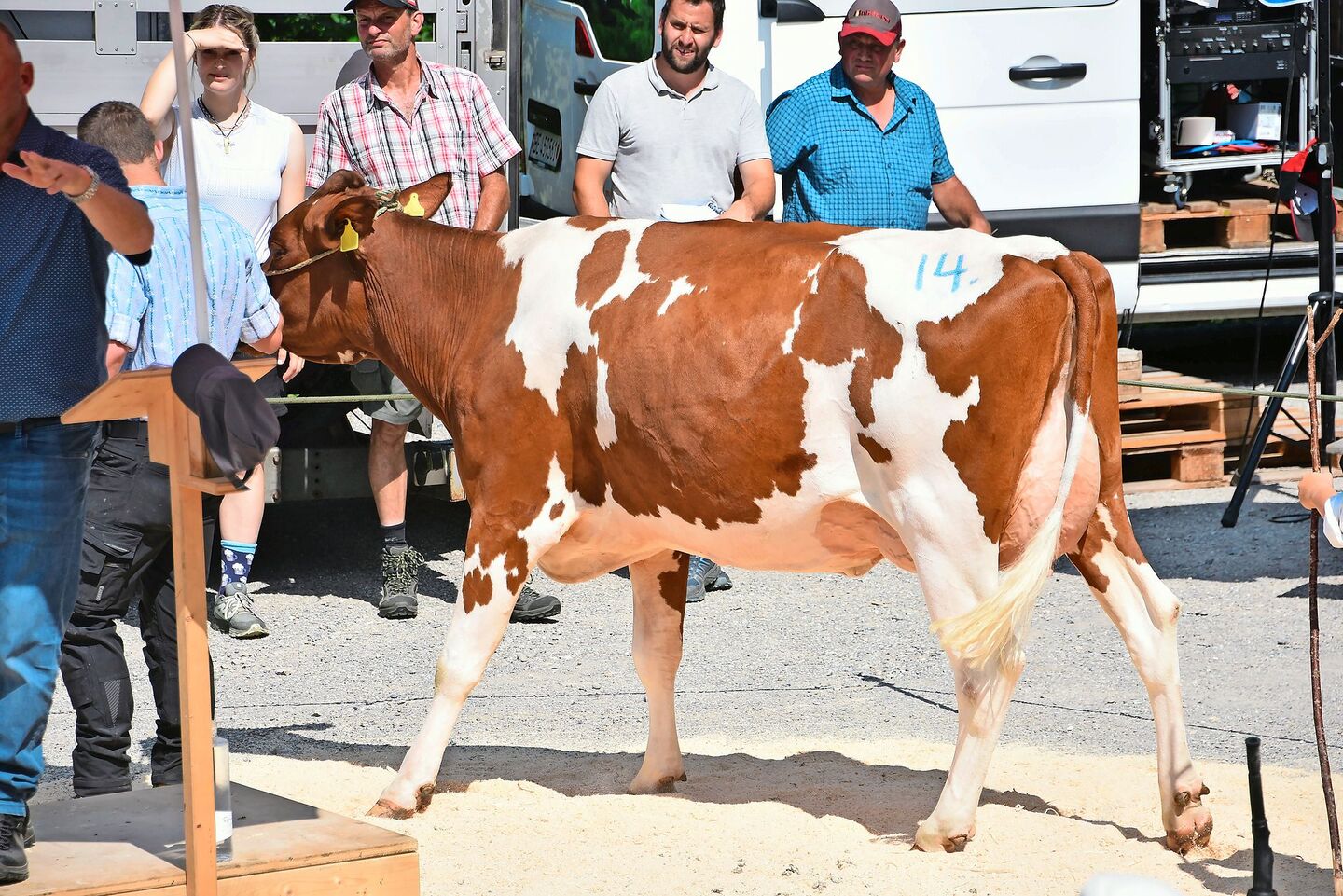 Den Höchstpreis löste dabei die wunderschöne SF-Kuh Anthony Leandra, angeboten von Hans Wenger, Zwischenflüh. Diese sehr exakte Zweitmelkkuh konnte Auktionator Andreas Aebi für 4800 Franken zuschlagen. Eine weitere SF-Kuh, die bestausgewiesene Rain’s Semino Alexa von Niklaus Neukomm, Horboden, löste 4750 Franken. Die verkauften Kühe lösten einen Durchschnittspreis von 4006 Franken. Die 22 Rinder für die Mutterkuhhaltung lösten den Durchschnittspreis von 4150 Franken.