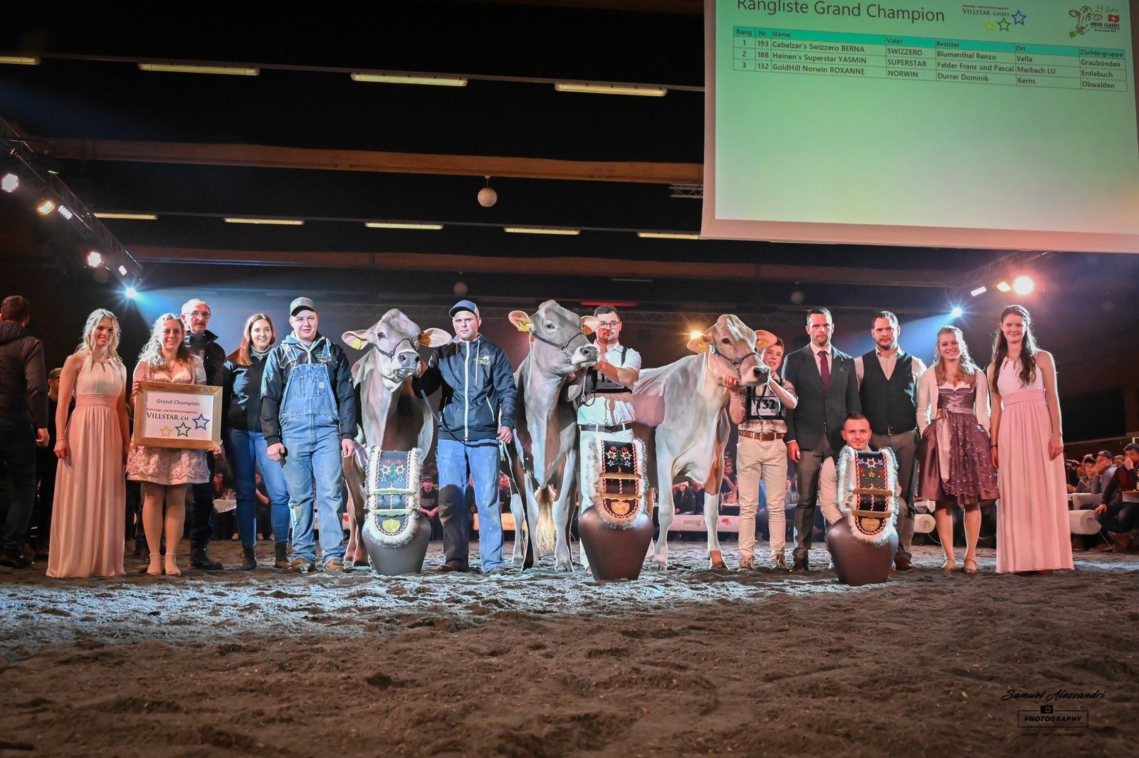 Als Titelverteidigerin trat Phil Estell von Martin Wallimann aus Alpnach Dorf bei der diesjährigen Swiss Classic an. Sie präsentierte sich zwar auch heuer in top Form, aber bereits in der Abteilung musste sie sich geschlagen geben und mit dem zweiten Rang vorliebnehmen. Vor ihr in der Abteilung 6 stand mit Cabalzar’s Svizzero Berna von Renzo Blumenthal, Vella GR die amtierende Miss OLMA. Berna liess auch in den Spezialwettbewerben an der Swiss Classic nichts anbrennen: Erst setzte sie sich im Schöneuterwettbewerb 2. und 3. Laktation durch und als krönenden Abschluss wurde sie vom Experten Dani Gisler noch zur Grand Champion gekürt. Flankiert wurde Berna auf dem Podest von GoldHill Norwin Roxanne von Dominik Durrer aus Kerns OW, welche Honorable Mention wurde und von der aktuellen Miss der Eliteschau Entlebuch Heinen’s Super Yasmin von Franz und Pascal Felder aus Marbach LU, welche zur Vize gekürt wurde.
