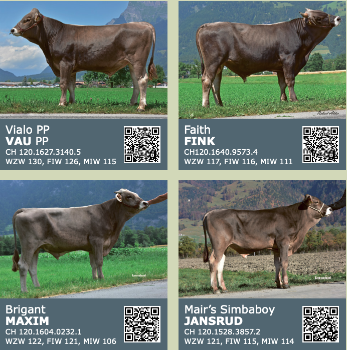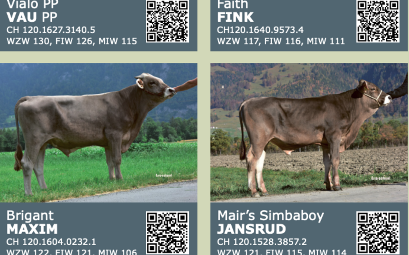 Über die QR-Codes des Stallblatts der Bio-KB-Stiere 2024 sind die Zuchtwerte und die Reservationsmöglichkeiten abrufbar. Diese Samendosen können über die Webseite des jeweiligen Stiers oder unter der Telefonnummer 031 910 62 22 bei Swissgenetics bestellt werden.