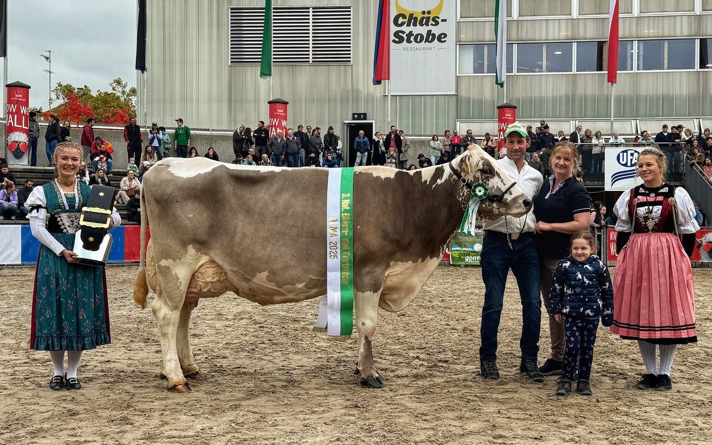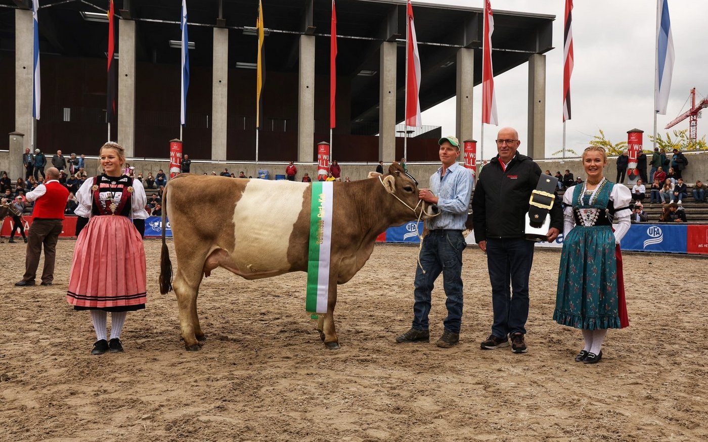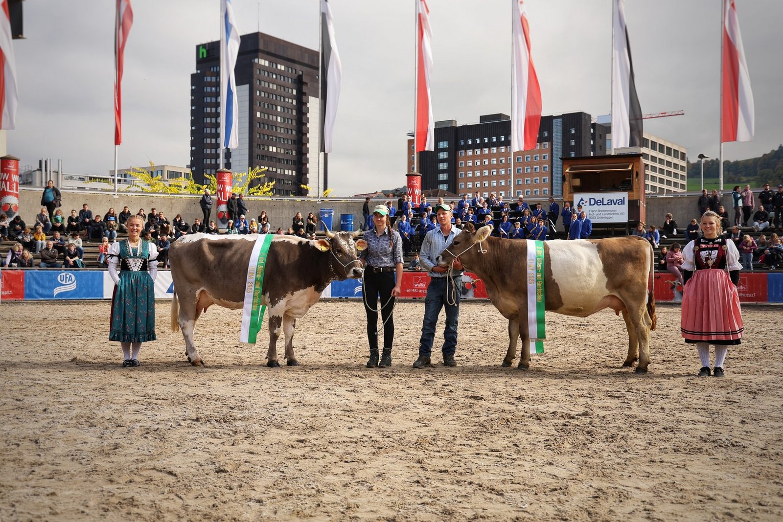 Ein schwieriger Entscheid für Matthias Süess also. Am Ende entscheidet er sich für eine hochgewachsene Brown Swiss – das Rennen macht Espania von Robert Röthlin aus Hauptwil TG, sie wird Tagessiegerin. «Sie präsentiert sich mit einem extrem langen, super verbundenen und fest beaderten Euter und zeigt sich gegenüber der Vize im Knochenbau und im Fundament eine Spur feiner», lobt Süess die Tagessiegerin. Robert Röthlin strahlt sichtlich stolz über seine Kuh, und sagt zur BauernZeitung: «Mein Vater hielt bereits Blüem im Stall, und ich züchte einfach weiter.»