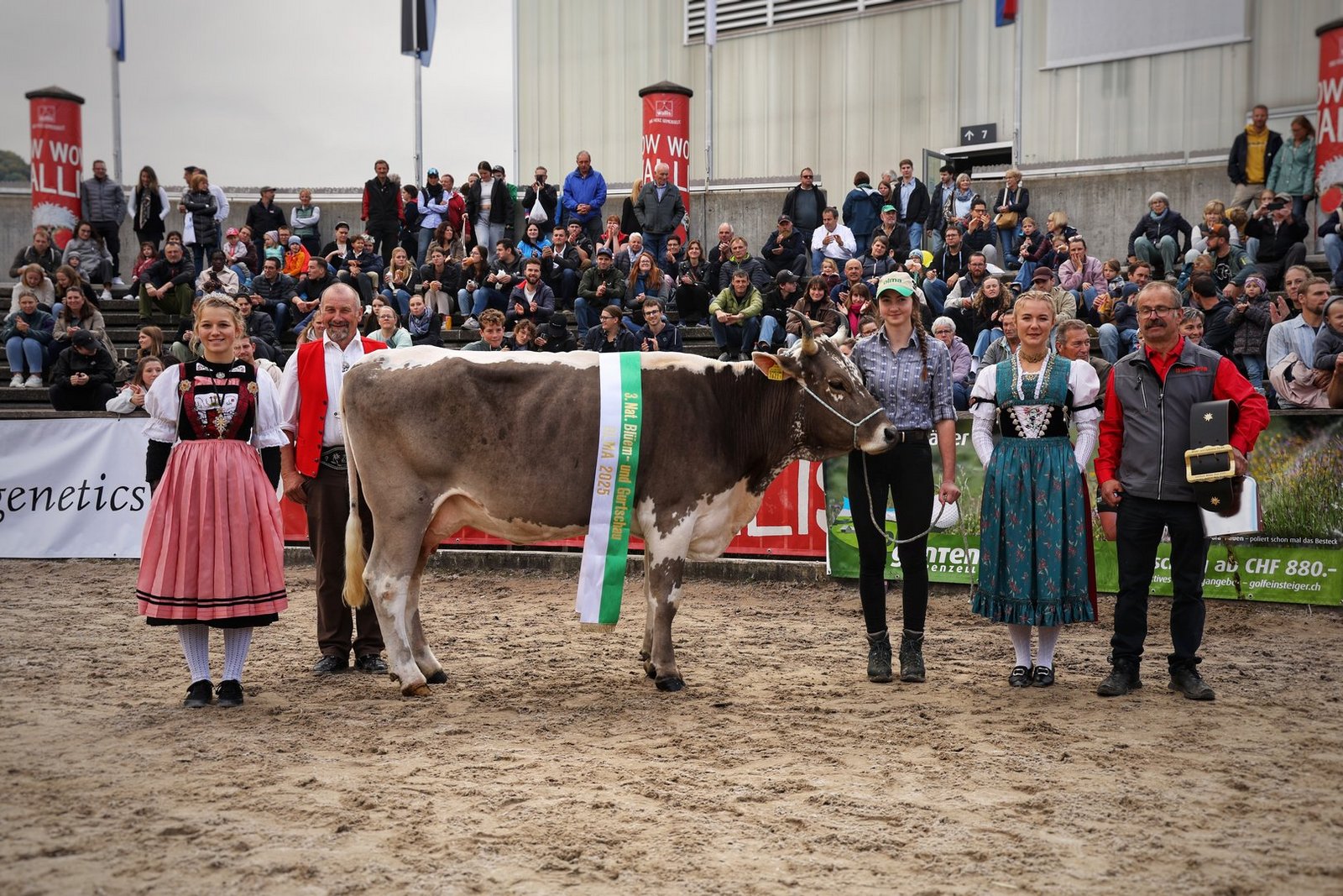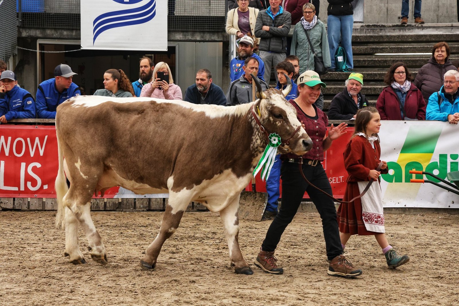 Als Besondere der Besonderen bestimmt schliesslich Peter Salzgeber die Schönste aller Blüem: die OB-Kuh Nina von Albin Ebnöther aus Willerzell SZ. Sie überzeugt mit ihrer wunderschönen Zeichnung und ihrem Gang, mit dem sie wie auf einer Wolke durch die Arena schwebt.