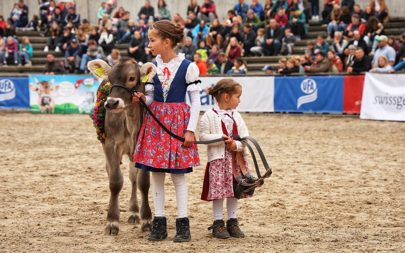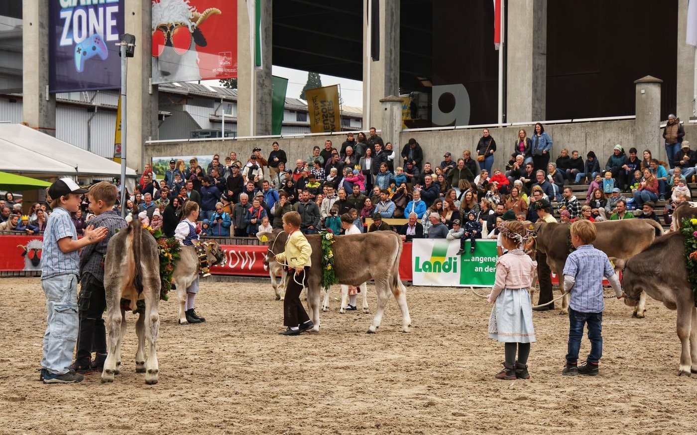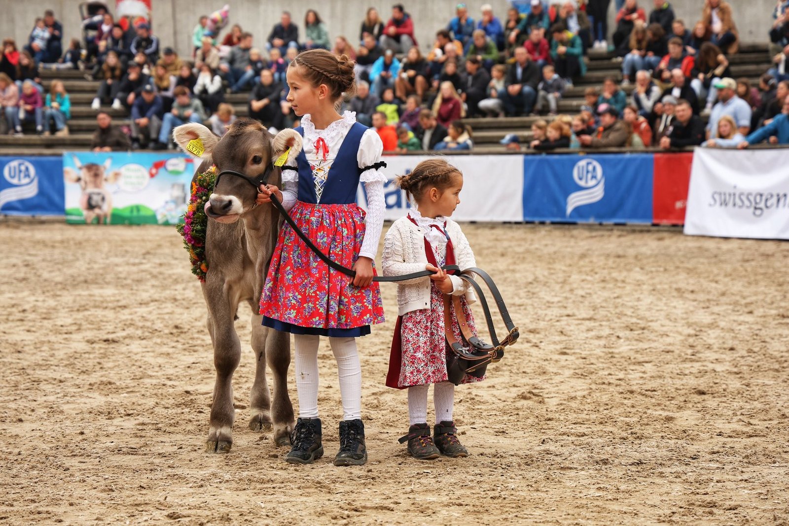 Neben den schönen Kühen lockt auch dieses Jahr wieder ein aussergewöhnliches Mittagsintermezzo die Zuschauer an. Vor der Verkündung der Gesamtsiegerinnen fluten Kinder in Trachten, mit ihren mit Blumen geschmückten Blüem- und Gurt-Lieblingskälbern die Arena, wobei das ein oder andere Kälbli, zur Freude des Publikums, kurzfristig Lust auf ein kurzes Rodeo verspürt.