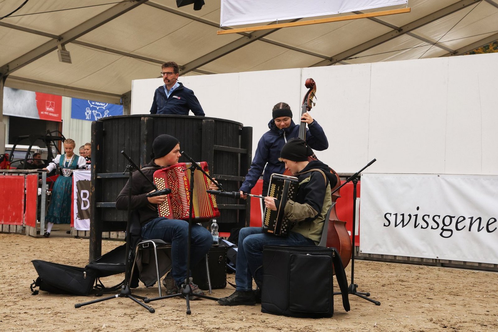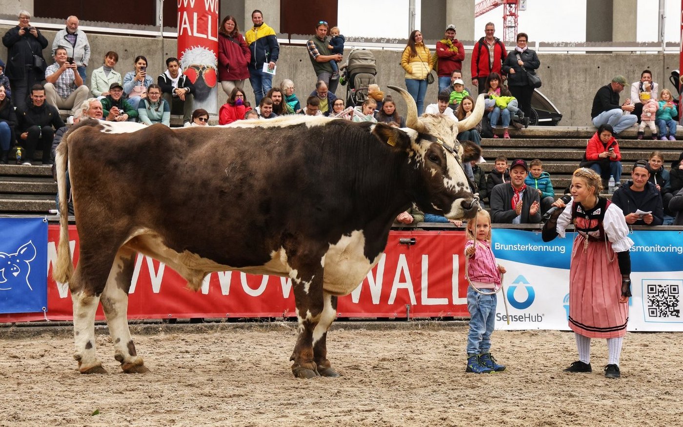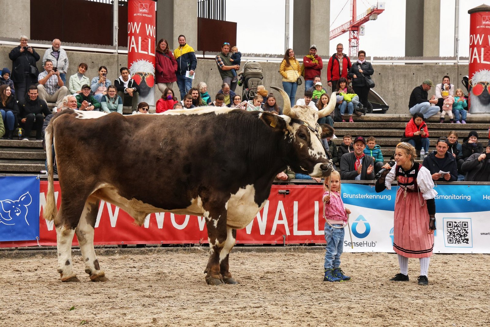 Neben den schönen Kühen lockt auch dieses Jahr wieder ein aussergewöhnliches Mittagsintermezzo die Zuschauer an. Vor der Verkündung der Gesamtsiegerinnen fluten Kinder in Trachten, mit ihren mit Blumen geschmückten Blüem- und Gurt-Lieblingskälbern die Arena, wobei das ein oder andere Kälbli, zur Freude des Publikums, kurzfristig Lust auf ein kurzes Rodeo verspürt.