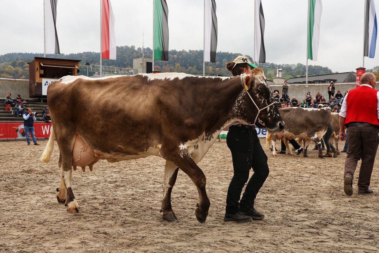 Der Unterschied zwischen diesen beiden Rassen zeigt sich unter anderem deutlich in der Abteilung 8. Dort misst sich die stämmige OB-Kuh Mia von Peter Rohrer aus Vattiz GR und Züchter Markus Beeler-Schuler aus Rothenthurm SZ mit einer Milchleistung von rund 5600 kg mit der Brown-Swiss-Kuh Blüem von Karl Räss aus Altstätten SG, die in der neunten Laktation durchschnittlich 9100 kg erreicht.