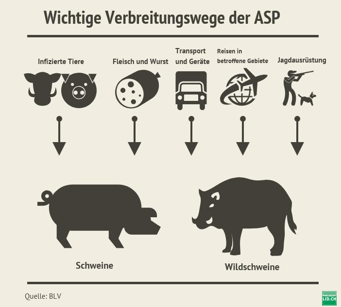 Das Schweizer Bundesamt für Lebensmittelsicherheit und Veterinärwesen (BLV) erachtet die Gefahr als gross, dass es die ASP in die Schweiz schafft. Das Radar Bulletin zur Tierseuchenlage stuft das Risiko seit längerem als rot und damit in der obersten Stufe ein.