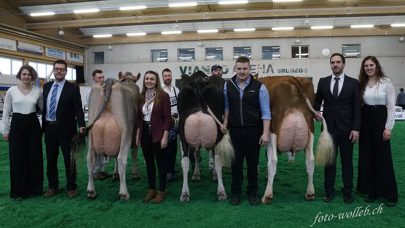 Richter Pozzatti zeigte sich in der Champion Wahl sehr erfreut über die Qualität der Brown Swiss Kühe. Alle sechs Tiere würden das Zuchtziel der Rasse verkörpern. Gleich zweimal jubeln durfte Familie Oswald aus Küttigen. Die Blooming-Tochter Bada-Boom gewann vor ihrer Stallgenossin Phil Phoenix. Pozzatti begründete seinen Entscheid mit der leicht stärkeren Lendenpartie der Erstplatzierten. Der Mention Titel ging an Salomon Brandy von Andreas Stocker, Boswil