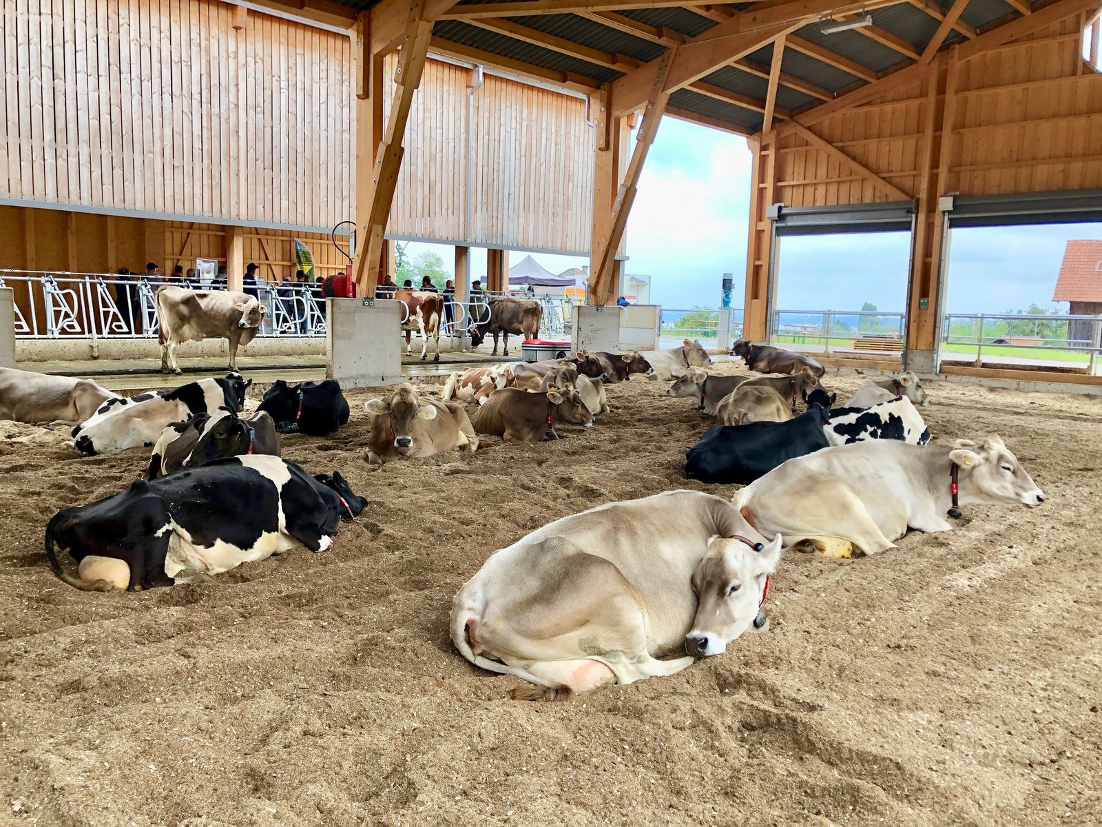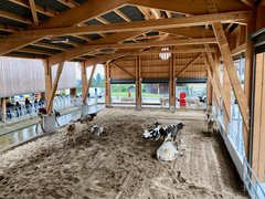 Die Kühe vom Bildungs- und Beratungszentrum Arenenberg zogen nicht nur in einen neuen Stall ein, sie mussten auch das ABC lernen. An vier Tagen der offenen Tür (siehe Box am Textende) erklären Mitarbeiterinnen und Mitarbeiter des Arenenbergs, wie alles funktioniert. Christian Eggenberger, Leiter Beratung, Entwicklung und Innovation, stellte gleich zu Beginn klar: «Die Kühe begriffen schnell.» Jetzt liege es vor allem bei den Menschen, dass alles optimal laufe.