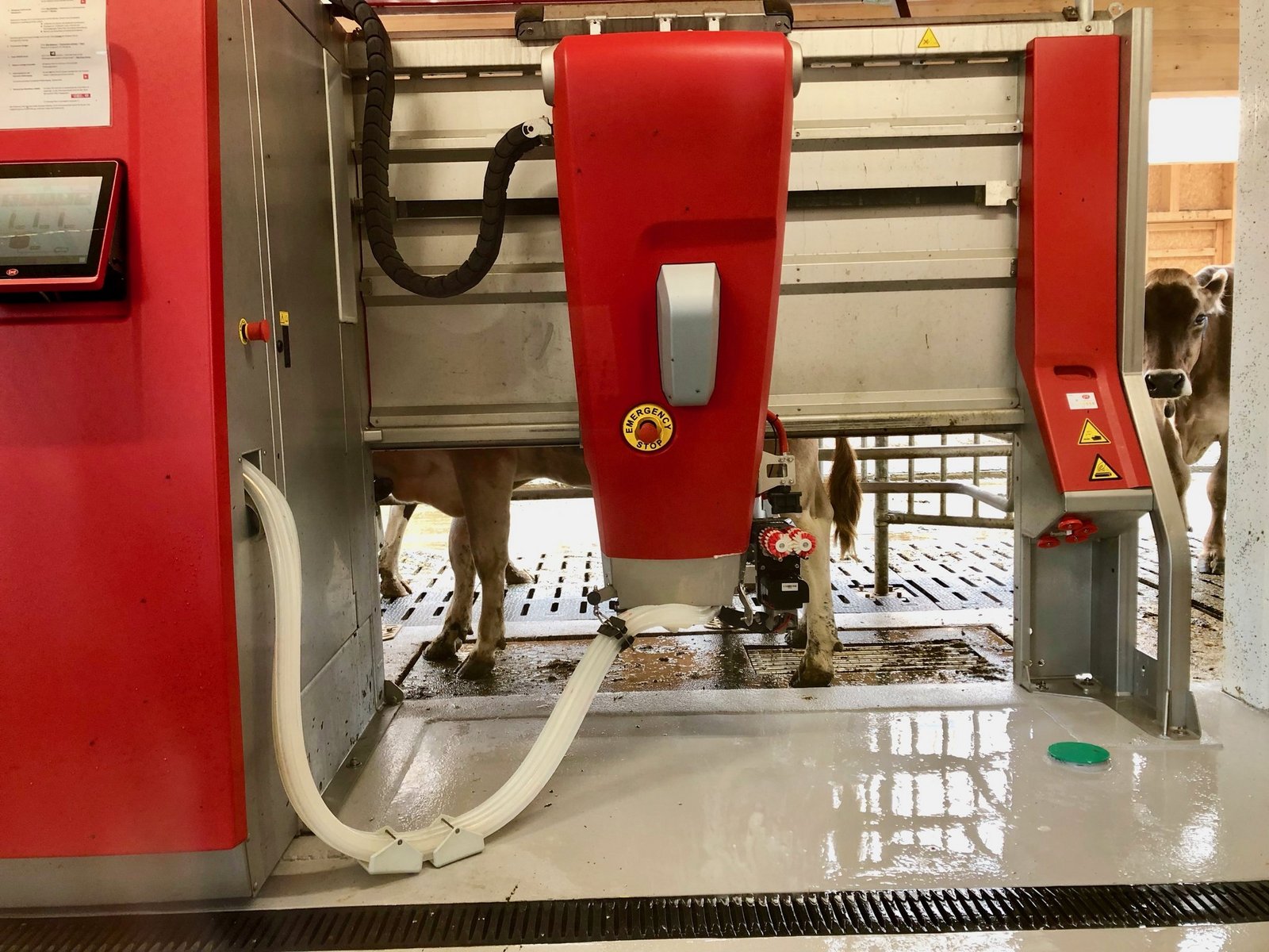 Ob eine Kuh auf die Weide darf oder nicht, hängt von ihrem Melkverhalten ab. Wenn sie im Roboter war, darf sie das Weidetor beim Laufhof Richtung Weide passieren. Wenn nicht, muss sie beim Stall bleiben. Das System kappierten die Kühe rasch, sind sich Nyfeler und Schwager einig.