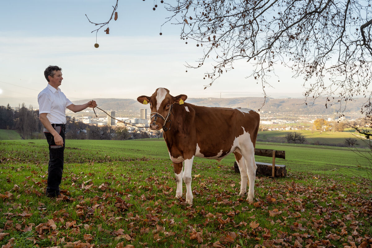 Noch ist der Siegermuni nicht getauft, aber schon jetzt bekommt er viel Aufmerksamkeit von Jürg Degen. Der Landwirt aus dem Baselbieter Pratteln bewirtschaftet mit seiner Familie den Hof Schönenberg. Von dem Stall, in dem der junge Stier zur Welt gekommen ist und wo schon seine Mutter und Grossmutter gelebt haben, blickt man direkt auf eine Ebene. Dort wird in zwei Jahren das nächste Eidgenössischen Schwing- und Älplerfests (ESAF) stattfinden.