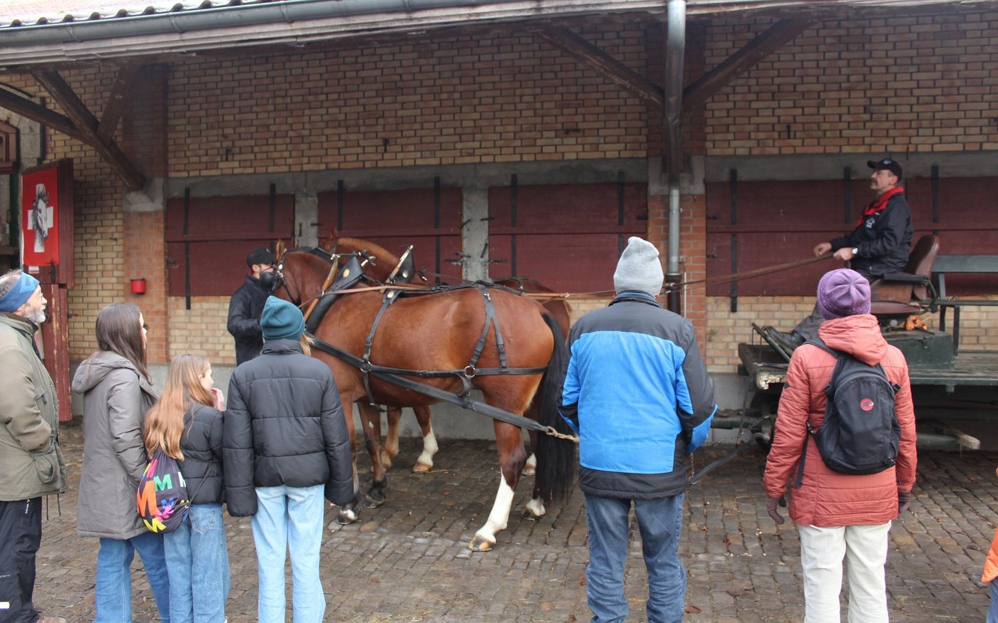 Eine besondere Herausforderung stelle die Ausbildung der Pferde im Fahren dar. Laut Vorschriften dürfen keine Scheuklappen verwendet werden, wodurch die Pferde auf eine ungewohnte Situation treffen.