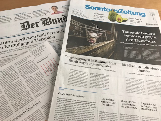 Die "Sonntagszeitung" bzw. die Herausgeberin Tamedia belässt es übrigens nicht bei einem einzelnen Artikel, geplant ist offenbar eine wöchige Serie unter dem Titel Brennpunkt Bauernhof, wobei der Titel unvollständig ist, da sich nicht sämtliche Verfahren gegen Landwirte richten, sondern teilweise auch gegen Transporteure. Im zweiten Teil, den die Tamedia-Blätter heute in einer koordinierten Aktion gross fuhren, beklagen sich die Kantonstierärzte über mangelnde finanzielle Ressourcen für unangemeldete Kontrollen.