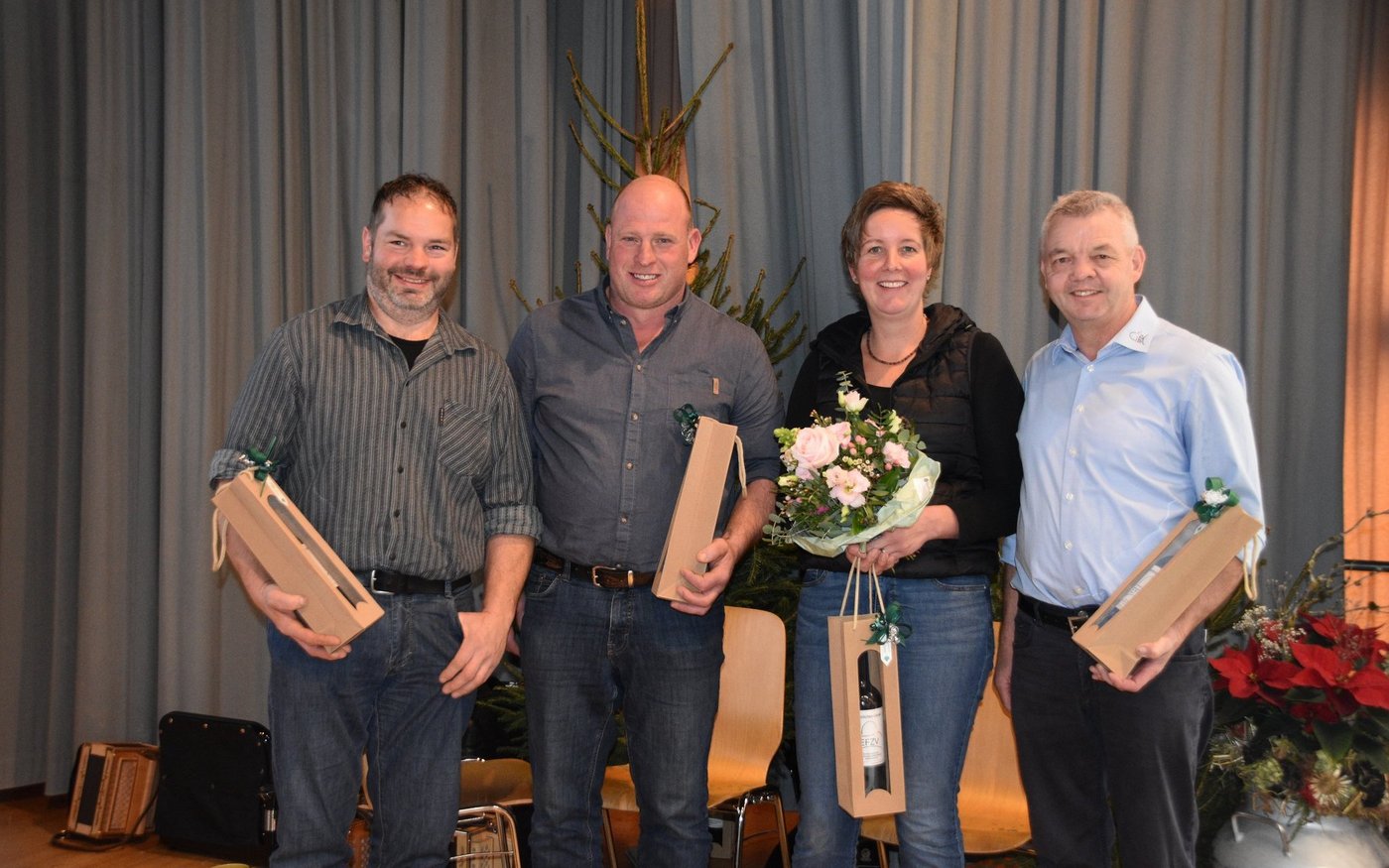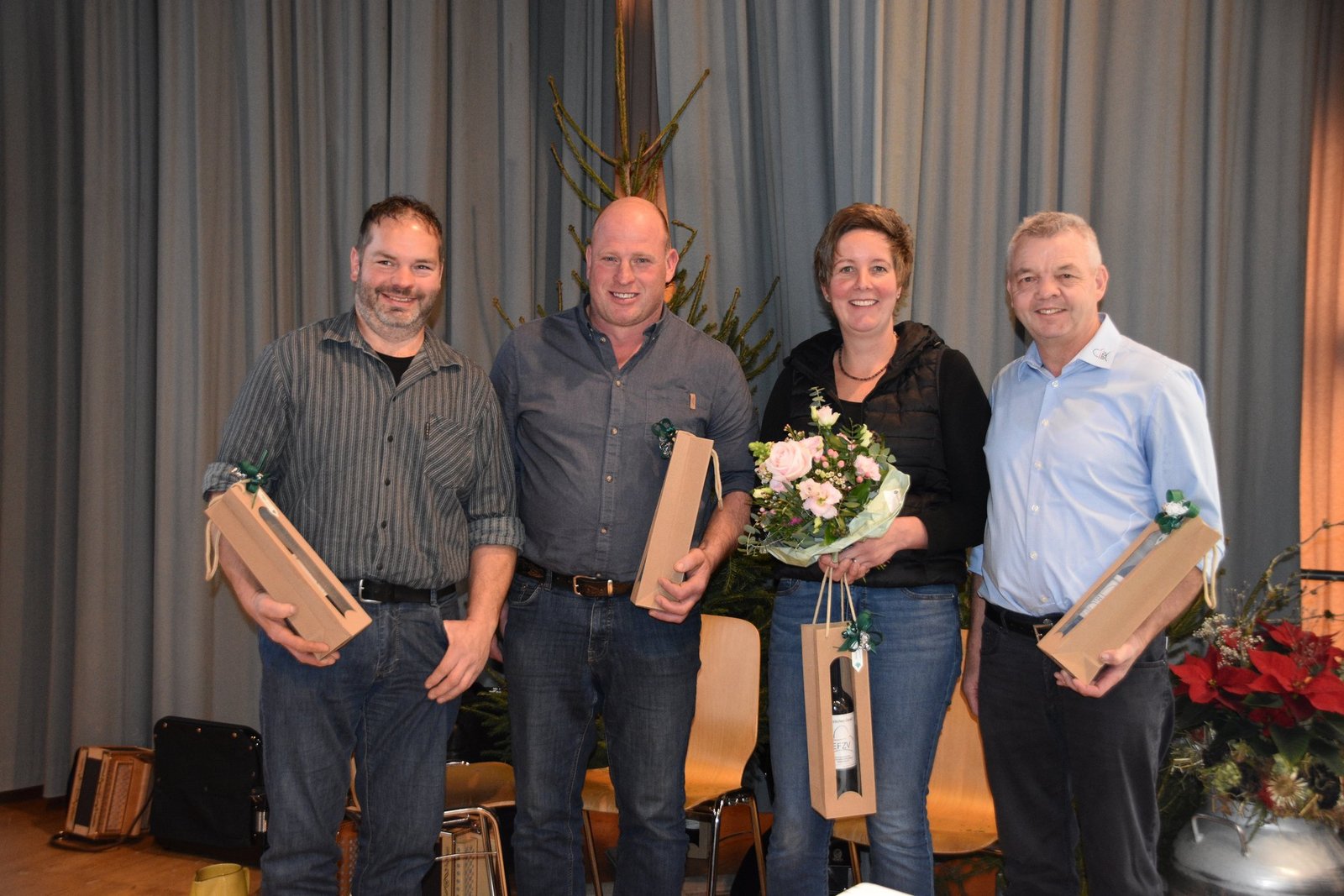 Ruedi Sommer, Präsident des Emmentalischen Fleckviehzuchtverbands, wies in seinem Jahresrückblick auf die vielen Schauerfolge seiner Mitglieder hin. Mit der Starparade vom Freitag, 21. Februar (abends mit den Jungzüchtern) und am Sonntag, 23. Februar (mit den Kühen) steht schon bald ein nächster Höhepunkt an. Dieses Jahr am 6. September findet zudem in Schüpbach auch die Emmentalische Verbandsschau wieder statt. Dass das Emmental ein starkes Zuchtgebiet ist, zeigt sich nicht nur an den zwei Auktionen in Burgdorf und in Schüpbach, sondern auch an den vielen 100'000er-Kühen die jedes Jahr an der DV geehrt werden können. Dieses Jahr waren es deren 52 Kühe mit ihren Züchterinnen und Züchter, die von Swissherdbook-Präsidenten Markus Gerber und dessen Direktor Michel Geinoz einen Plakette überreicht bekamen.