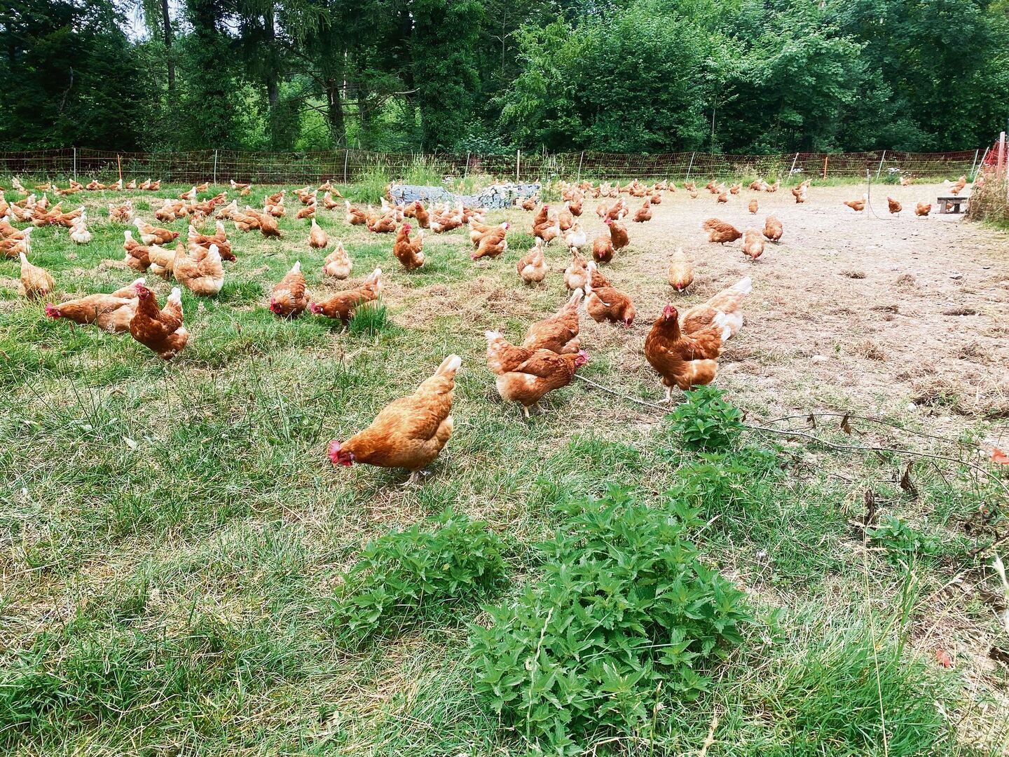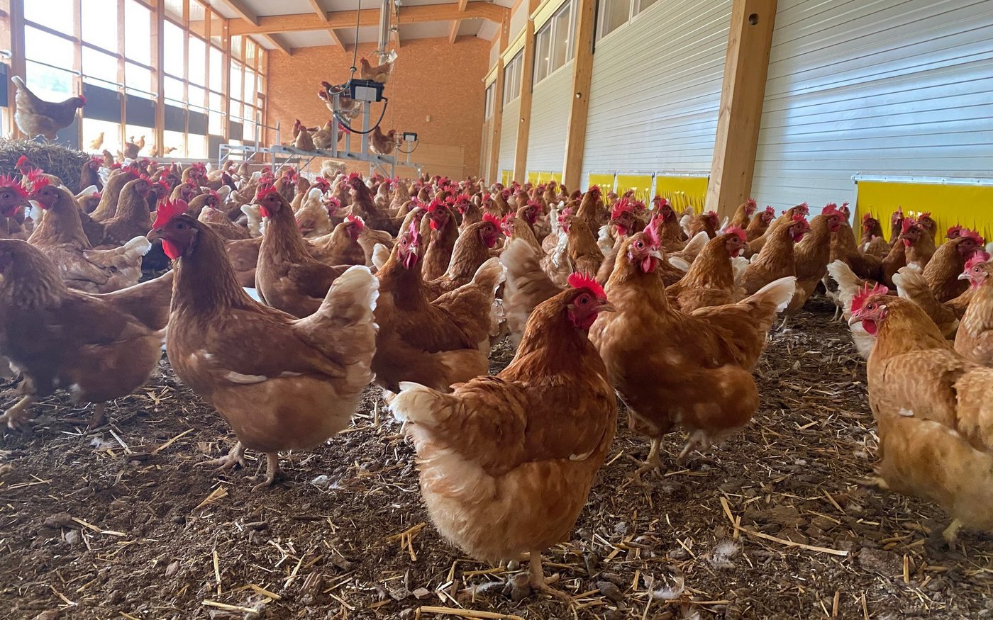 [REL 1]Auf der Weide am Waldrand tummelt sich zufriedenes braunes Federvieh, pickt und scharrt. «Ich werde die Herde vermissen», hält Tobias Affentranger mit Blick auf das Treiben fest. Bald werden die 2000 Legehennen ausgestallt. Es war die erste Herde von Nadine und Tobias Affentranger-Widler auf dem Lindenhof. Im Juli vor einem Jahr konnten die Bioproduzenten aus Jonen AG ihren neuen Stall in Betrieb nehmen. Rass…