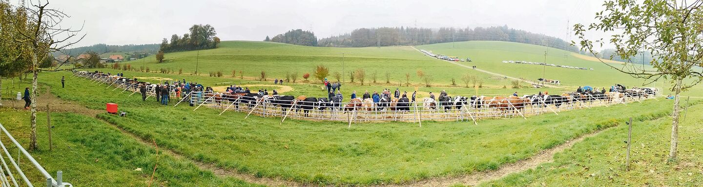 «Als ich das allerletzte Mal ausrückte, bin ich vor lauter Schneegestöber fast nicht mehr nach Hause gekommen», erinnert sich Urs Buri. Der ehemalige Präsident der Berner Schaukommission (bis 2012) ist, wie viele andere auch, nach Rumendingen gekommen, um der letzten Viehschau der Saison beizuwohnen. Die Schau, die mit grossem Aufwand der Züchter auf die Beine gestellt wurde, war zugleich die Abschlussarbeit von Schaupräsident Christian Aegerter. Zusammen mit seinen beiden Kollegen, Hansueli Lüthi (Gruppenleiter) und Werner Walter, stand er zum letzten Mal im weissen Mantel und mit blauem Wachsstift bewaffnet vor den Kühen. Zwölf Jahre standen die drei im Einsatz – alle mit viel Herzblut. Aegerter hat in seiner Position als Präsident den Zusammenhalt unter der Experten stets grossgeschrieben, wie er im Gespräch mit der BauernZeitung betont.