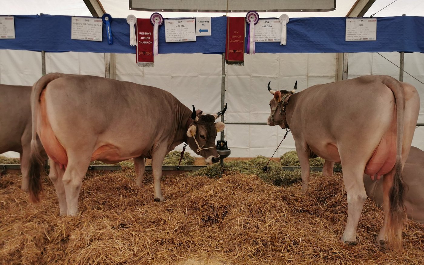Am ersten Aprilwochenende bewies die Rasse an der Bruna 2022, warum ihr das gelingt. Die gesunde Zweinutzungskuh hat eine grosse Anhängerschaft, die gewillt ist, die Rasse voranzubringen, aber deren Vorzüge zu erhalten. Einer davon ist sicherlich die gute Bemuskelung. «Höhe und Breite des Nacheuters müssen nicht so extrem sein, wie vielleicht bei einer Brown Swiss Kuh», erklärte Chef-Verbands-Experte Stefan Hodel, der die Ehre hatte, die OB-Kühe zu richten. Ein gutes Euter sei durchaus vereinbar mit einer starken Bemuskelung, ist er sicher. [IMG 2]