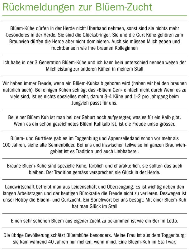 Blüem in Kürze Alte Wurzeln: Schon auf historischen Stallmalereien zu finden – kein moderner Trend. Vererbung: Das KIT-Gen ist bekannt, doch die Zeichnung bleibt unberechenbar. Beliebt und begehrt: Besonders schön gezeichnete Tiere erzielen hohe Preise. Züchter-Sorgen: Wenig geeignete Stiere – genetische Vielfalt ist begrenzt. Mehr als Nutzen: Für viele sind Blüem-Kühe Symbol, Stolz und Herzenssache. Lange galten…
