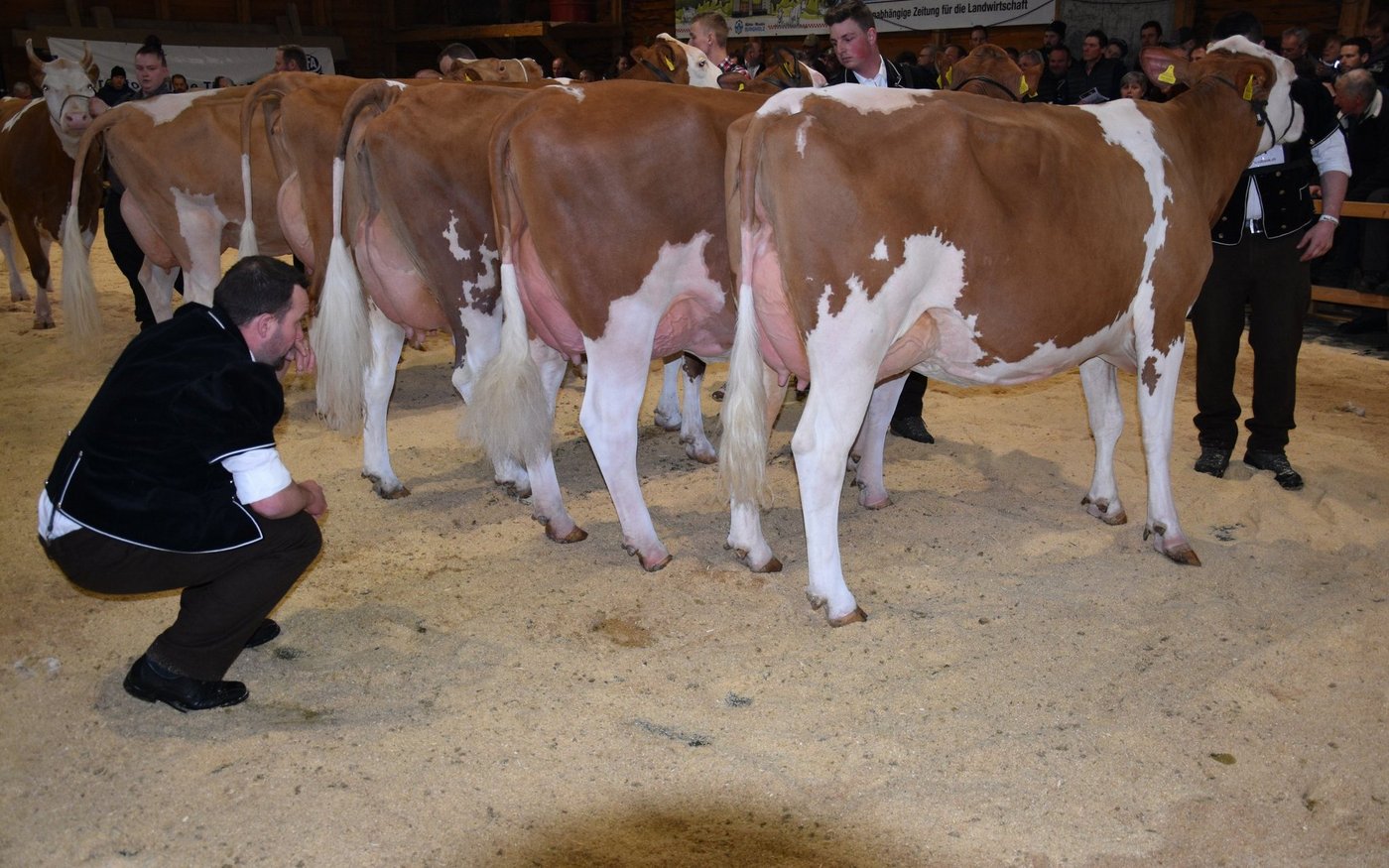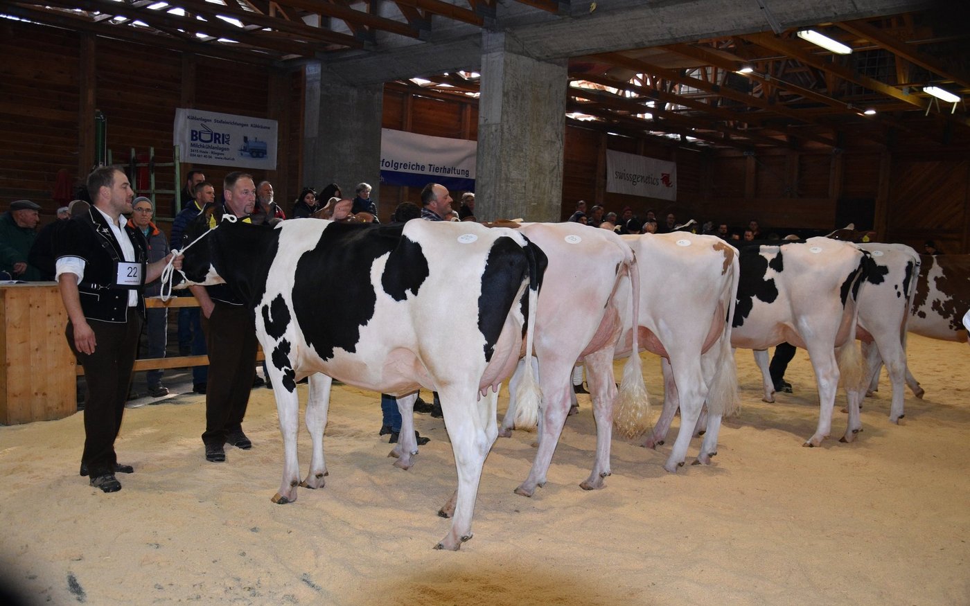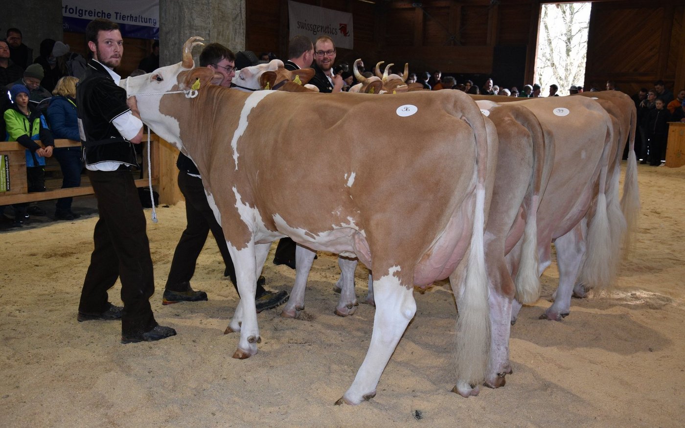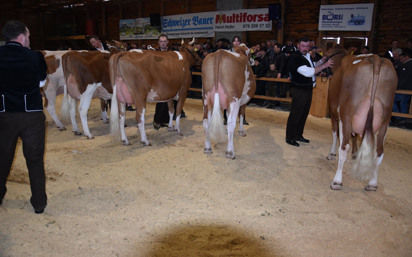 «Ich bekam Hühnerhaut als ich sie zum ersten Mal sah und ich habe immer noch Hühnerhaut, wenn sie vor mir steht», sagt der Richter Christian Zurbrügg bei der Championne-Wahl der Simmentaler- und SF-Kühen am Züchtertreff in Riggisberg vom Samstagnachmittag. Und in der Tat: Die eindrückliche und bekannte Simmentalerkuh Cremo Aurelia von der Familie Schmied aus Guggisberg, liess auch am 21. Züchtertreff nichts anbrennen…