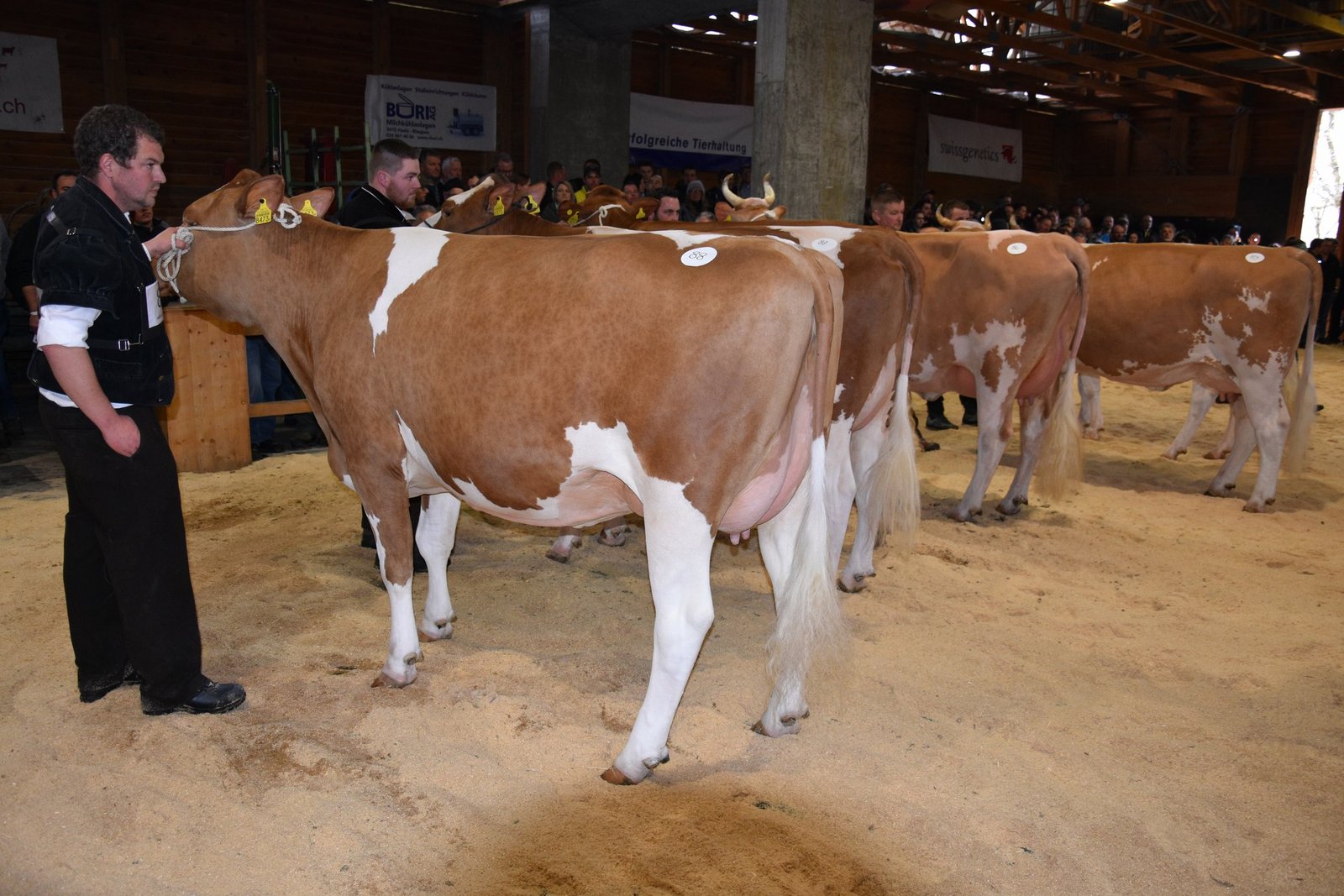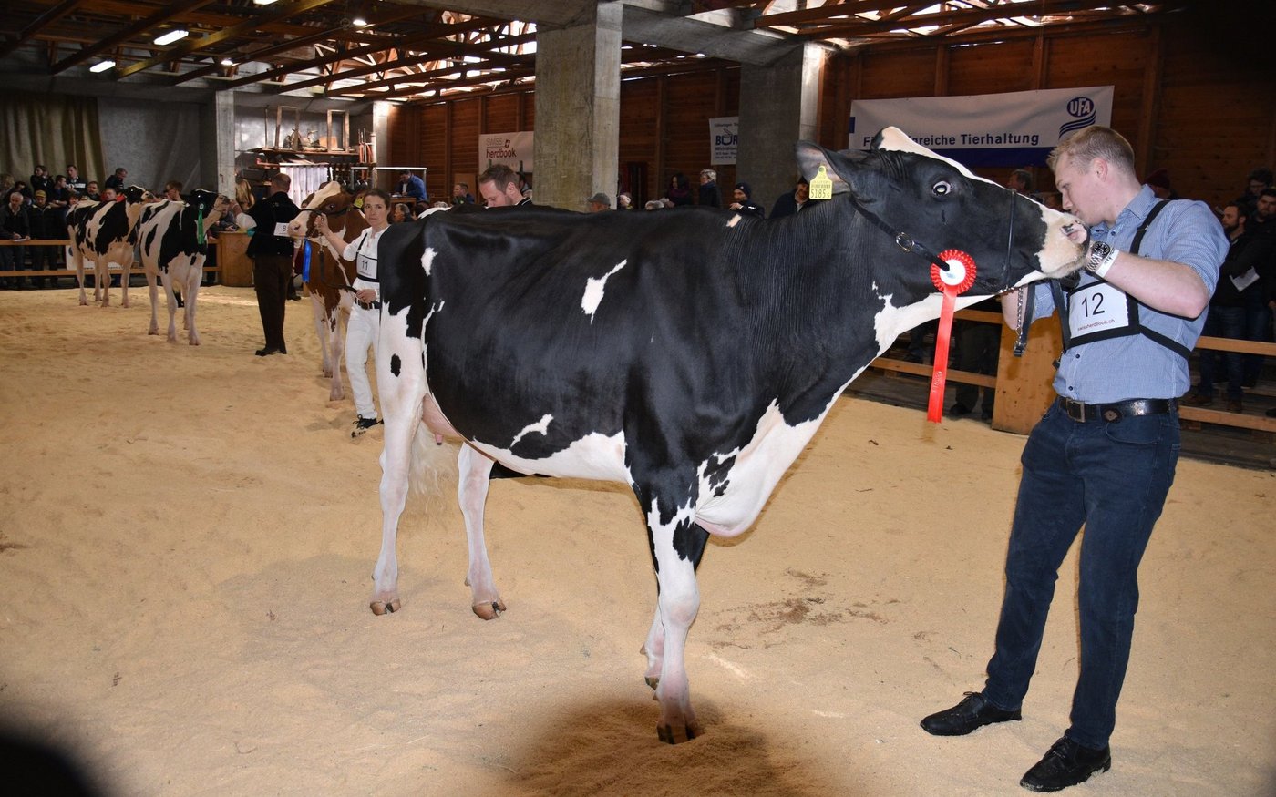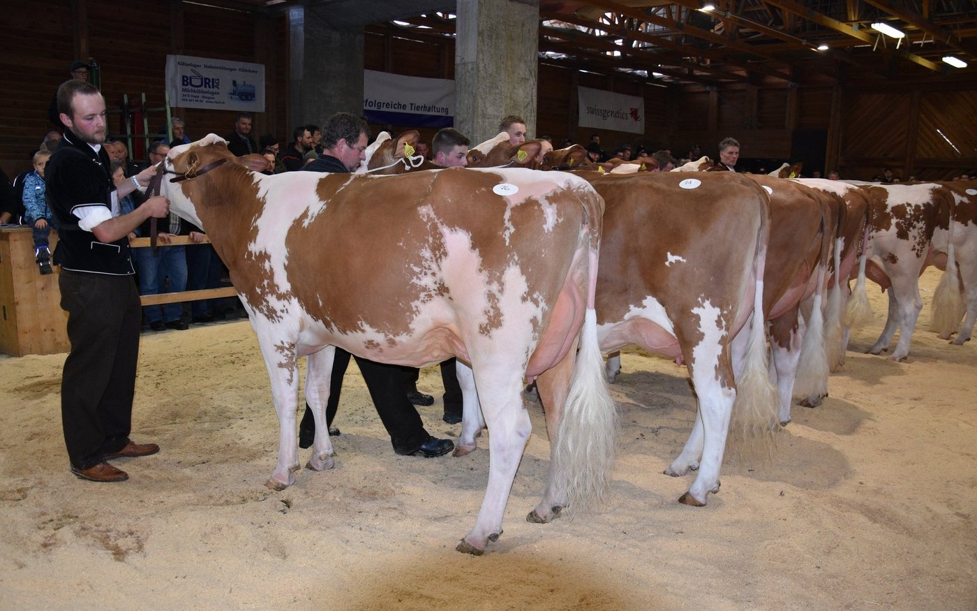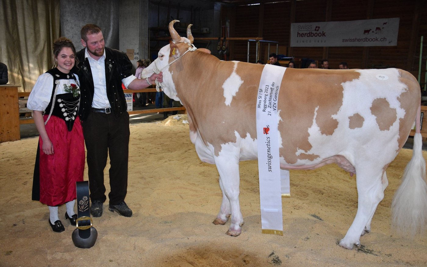 «Ich bekam Hühnerhaut als ich sie zum ersten Mal sah und ich habe immer noch Hühnerhaut, wenn sie vor mir steht», sagt der Richter Christian Zurbrügg bei der Championne-Wahl der Simmentaler- und SF-Kühen am Züchtertreff in Riggisberg vom Samstagnachmittag. Und in der Tat: Die eindrückliche und bekannte Simmentalerkuh Cremo Aurelia von der Familie Schmied aus Guggisberg, liess auch am 21. Züchtertreff nichts anbrennen…