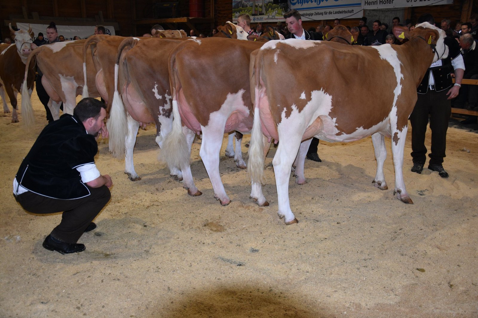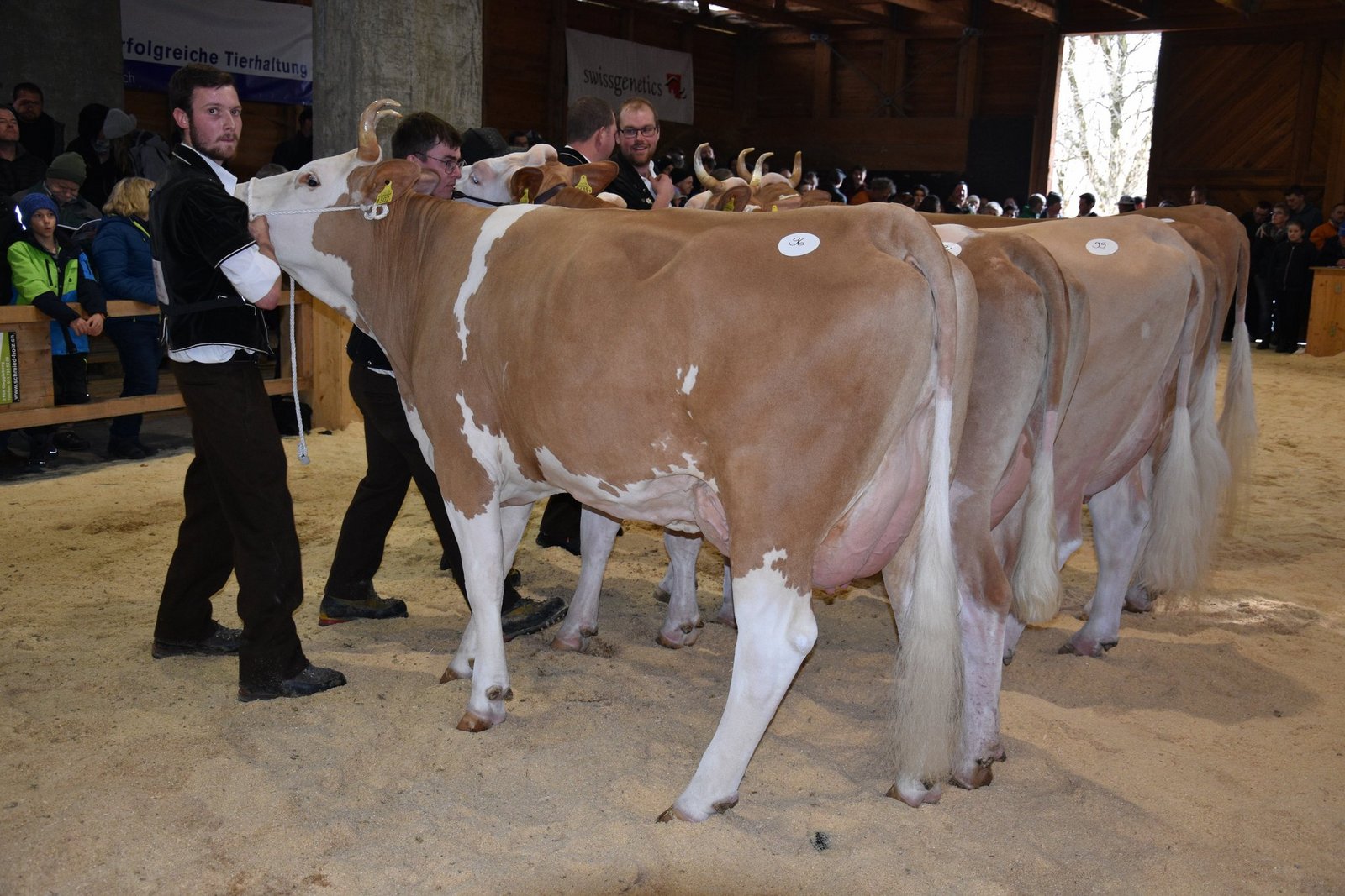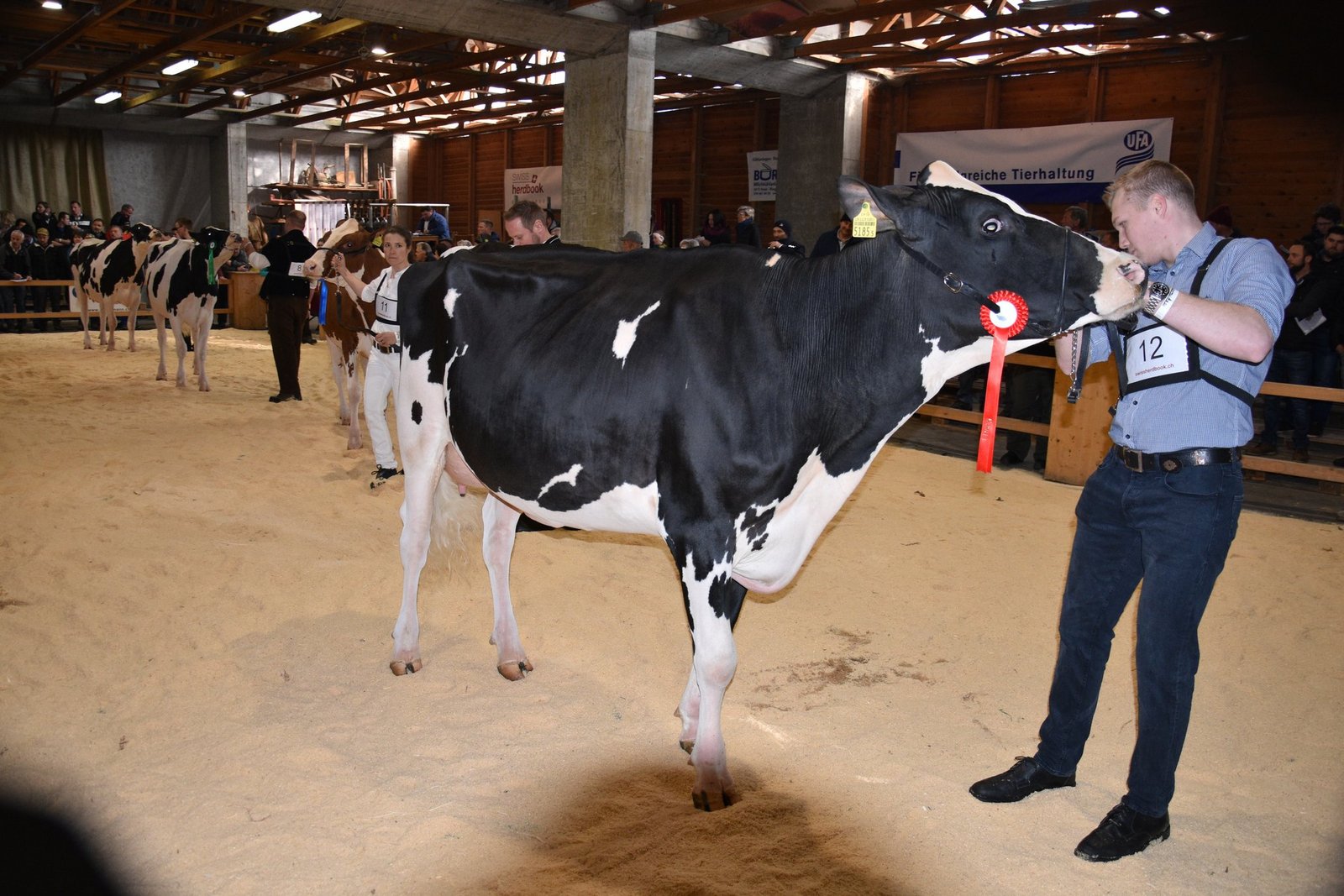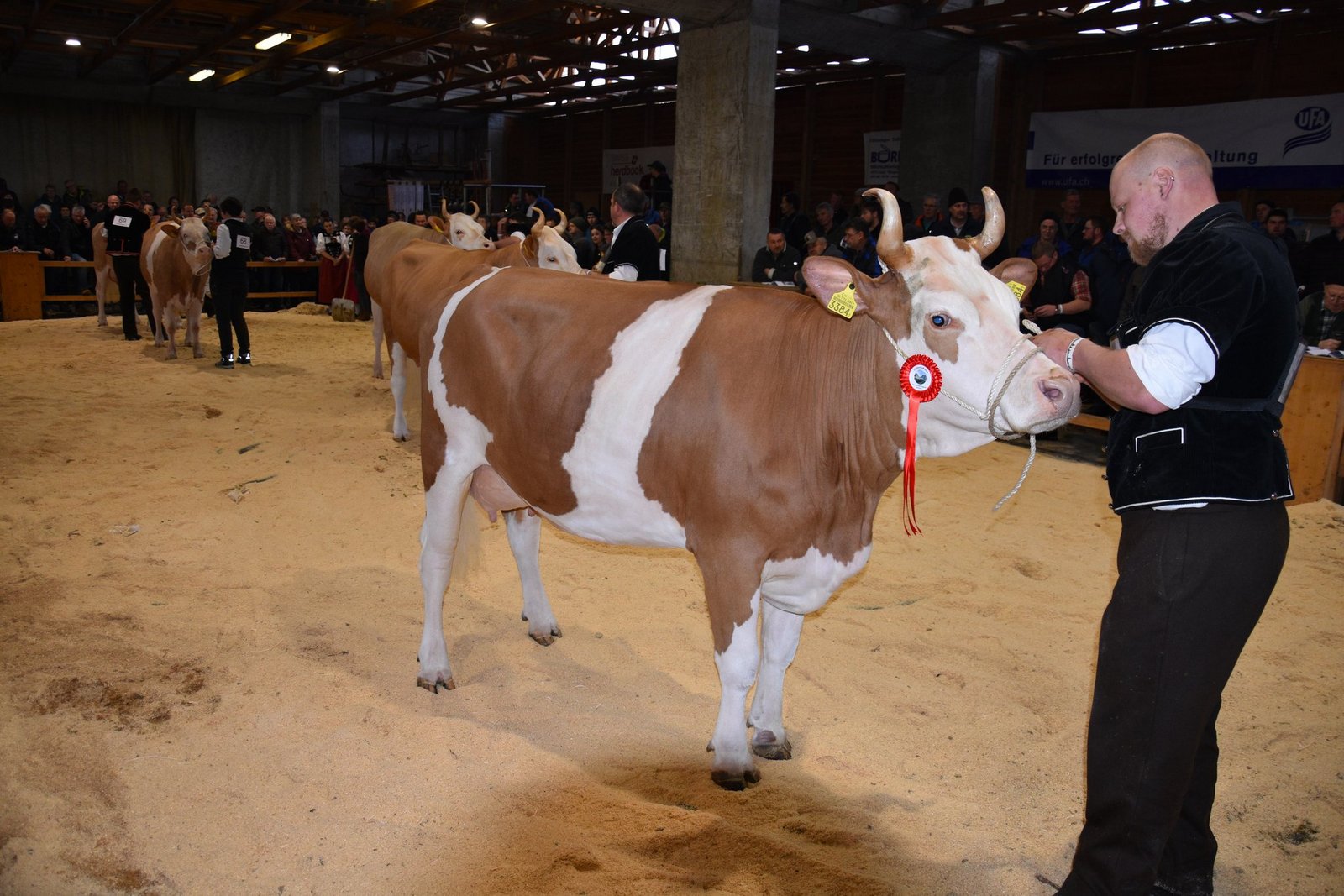 «Ich bekam Hühnerhaut als ich sie zum ersten Mal sah und ich habe immer noch Hühnerhaut, wenn sie vor mir steht», sagt der Richter Christian Zurbrügg bei der Championne-Wahl der Simmentaler- und SF-Kühen am Züchtertreff in Riggisberg vom Samstagnachmittag. Und in der Tat: Die eindrückliche und bekannte Simmentalerkuh Cremo Aurelia von der Familie Schmied aus Guggisberg, liess auch am 21. Züchtertreff nichts anbrennen…