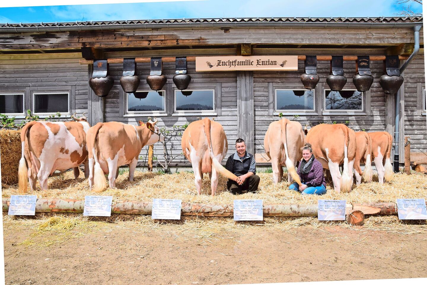 Für Christian und Laura Wüthrich aus Les Prés-de-Cortébert im Berner Jura war es die erste Zuchtfamilienschau, die sie zeigen konnten. Ihre Stammkuh Enzian präsentierte an der Schau sechs Töchter. Der schön hergerichtete Schauplatz war ein richtiger Augenschmaus. Die reine Simmentalergruppe überzeugte mit ihren hervorragenden Typeigenschaften und ihren starken Fundamenten. [IMG 1] Die beiden Richter Jürg Brönnimann…