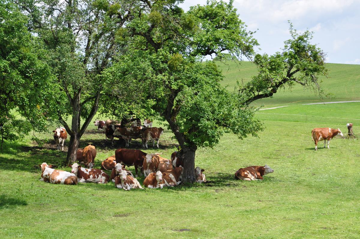 Aussentemperaturen ab 20°C stellen für Kühe bereits ein Problem dar. Um Hitzestress vorzubeugen, sollten Anpassungen auf dem Betrieb vorgenommen werden.