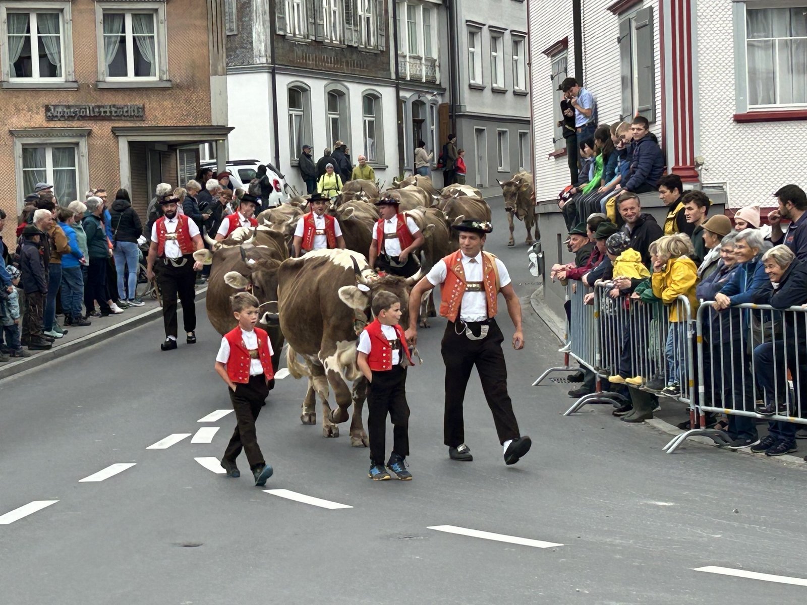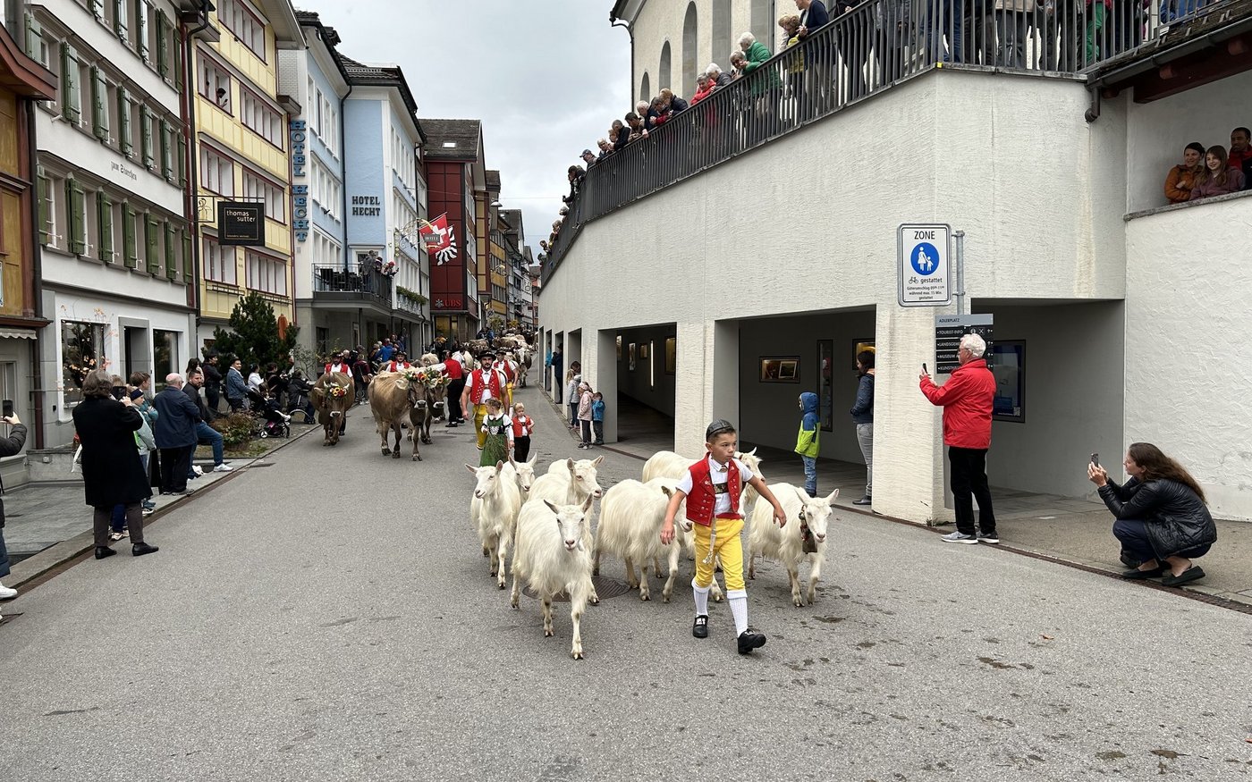 Unzählige Schaulustige säumten den Strassenrand, mittendrin Bundesrat Guy Parmelin mit Landeshauptmann Stefan Müller. Es war «Vechschau» in Appenzell. Von drei Strassenzügen aus führten die Sennen in Tracht und mit Naturjodel-Rugguseli ihre Tiere zum Brauereiplatz. Voraus ging in vielen Fällen ein Ziegenbub mit einer Schar Appenzeller Ziegen.