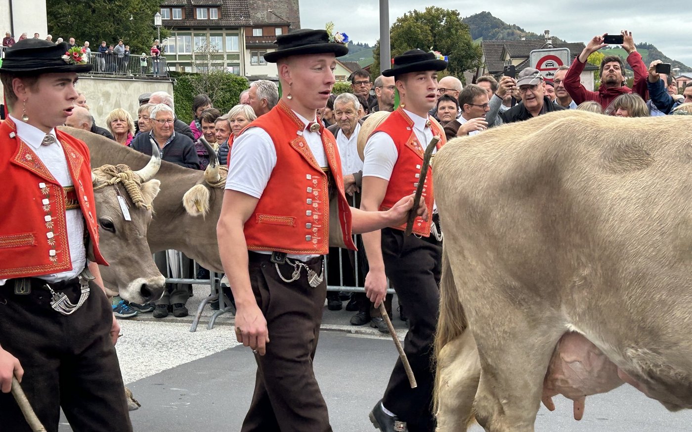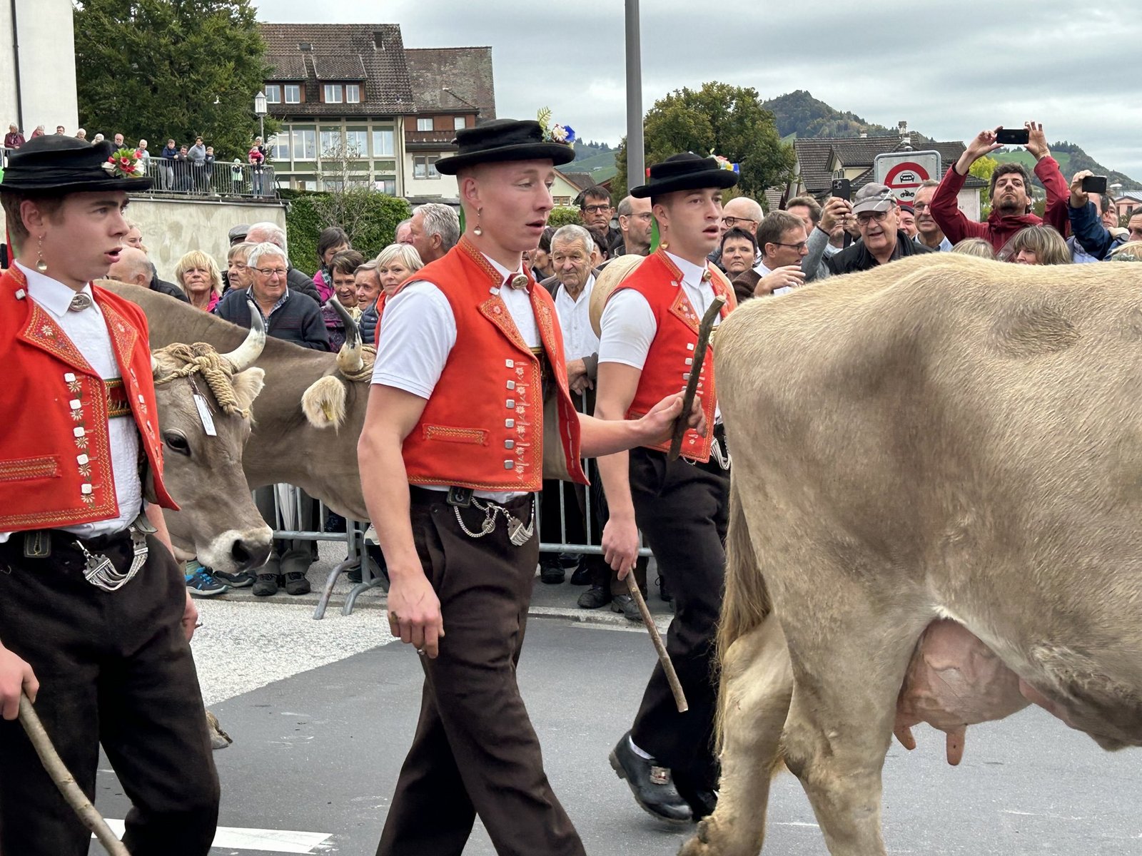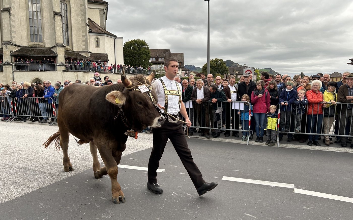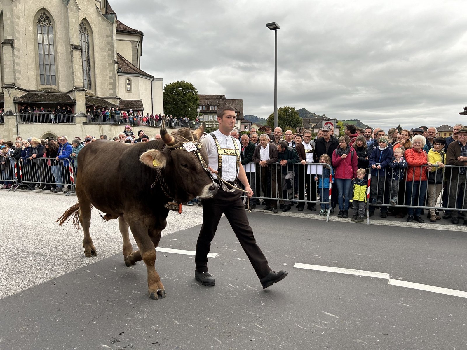 Die Zuschauer verfolgten diese Aufruhr mit Begeisterung. Auf dem Brauereiplatz dauerte es etwas, bis jede Kuh ihren Platz gefunden hatte. Aber ums Punktieren kam niemand herum. Das ist auch für die Landwirte der Zweck der Viehschau: Ihre Kühe präsentieren und ihren Zuchterfolg feiern. Auch Bundesrat Guy Parmelin liess es sich nicht nehmen und flanierte nach einem ausgiebigen Frühstück zusammen mit Landeshauptmann Stefan Müller durch die Reihen.