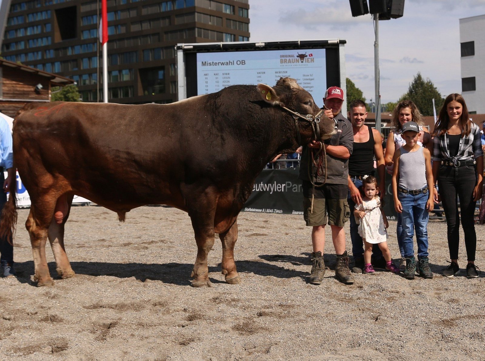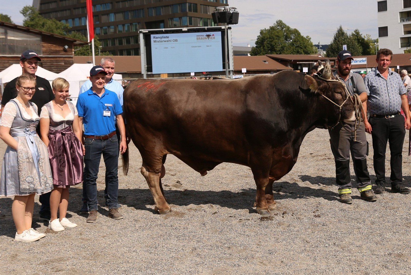 Rangliste Ihre Routine und jahrelange Schauerfahrung waren dem OB-Zuchtstier Einar von Martin Schrepfer aus Wald ZH und dem BS-Muni Gracer von Kevin Züger, Vorderthal SZ anzusehen. Die beiden Titelverteidiger vom Zuger Stierenmarkt schritten auch dieses Jahr stolz und ruhig durch den Ring. Beide präsentierten sich erneut in beneidenswerter Form und konnten ihre Titel damit verdient verteidigen. [IMG 8] Grosser Tag…
