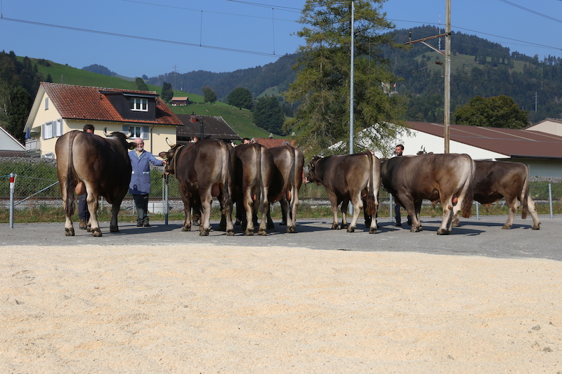 Gleich drei Mister Titel wurden bei den Braunviehstieren vergeben. Bei den Jüngsten gewann Migg von Hanspeter Rotach aus Waldstatt. Die Eleganz des Jungstieres gefiel dem Experten Robert Bodenmann aus Gais. Muni Benito (V: Cadence) von Wendelin Eugster aus Urnäsch siegte bei den mittleren Stieren. Der lange Stier stammt aus einer leistungs- und gehaltsstarken Blooming-Tochter von Hans Scherrer aus Gams. So richtig ins Schwärmen kam Experte Bodenmann beim ältesten Mister Braunvieh: «Der Stier zeigt trotz seines enormen Gewichtes ein sehr korrektes Fundament», so sein Kommentar zu Muni Walker von Martin und Daniel Kägi aus Wald ZH. Somit kamen beide Mister Senior aus dem zürcherischen Wald.