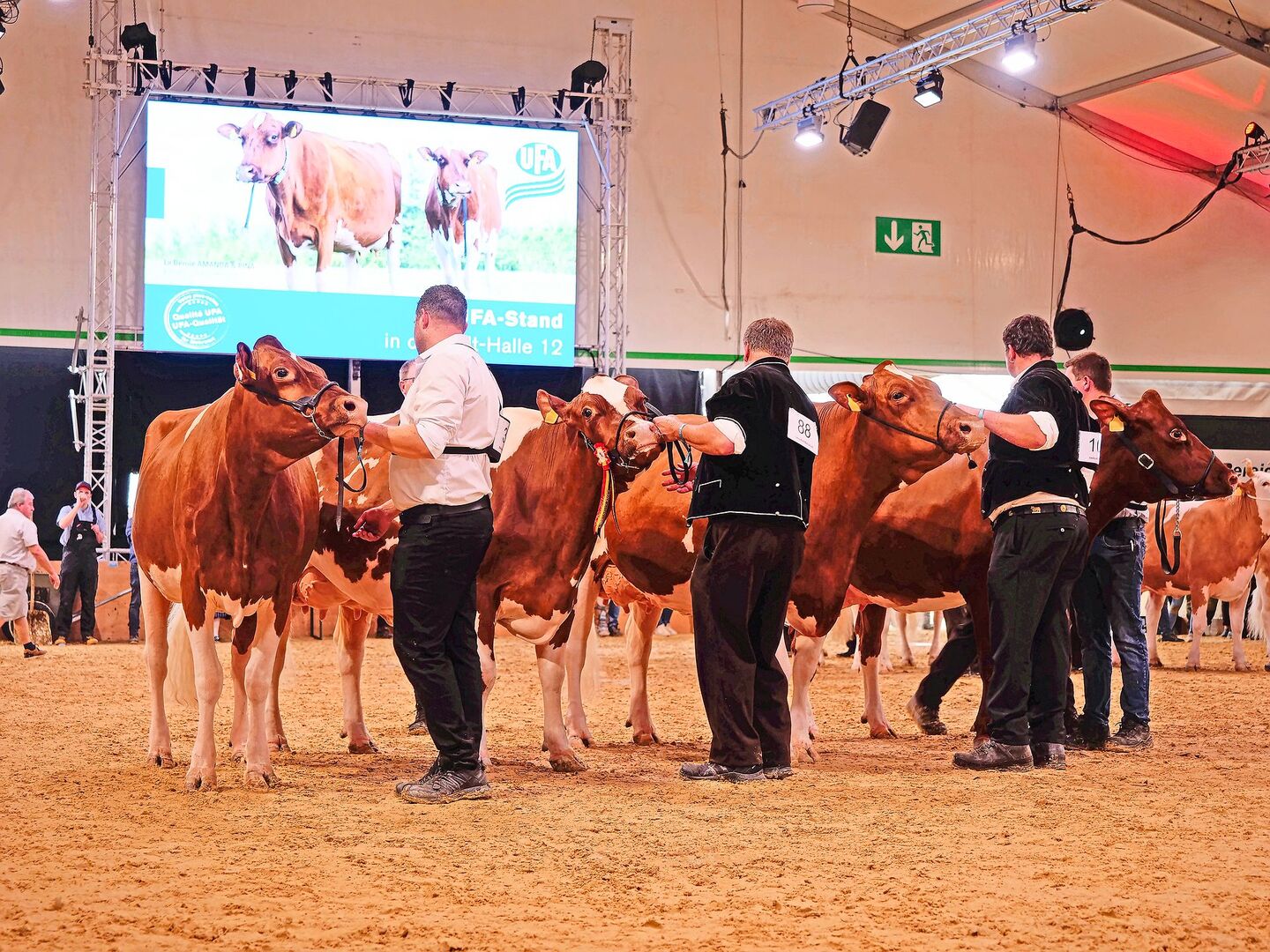 Gerichtet wurden die Tiere der Rasse Red-Holstein/Holstein von Simon Urfer aus Gerzensee. Die Simmentaler-Kühe stellte Toni Perren aus St. Stephan ein. Unter den Swiss Fleckvieh lag es an Simon Eichenberger aus Arni, die Schönheit der Tiere einzuordnen. Verteilt auf zwölf Kategorien, davon fünf der Rasse Red-Holstein/Holstein, wurden 121 Tiere vorgeführt.