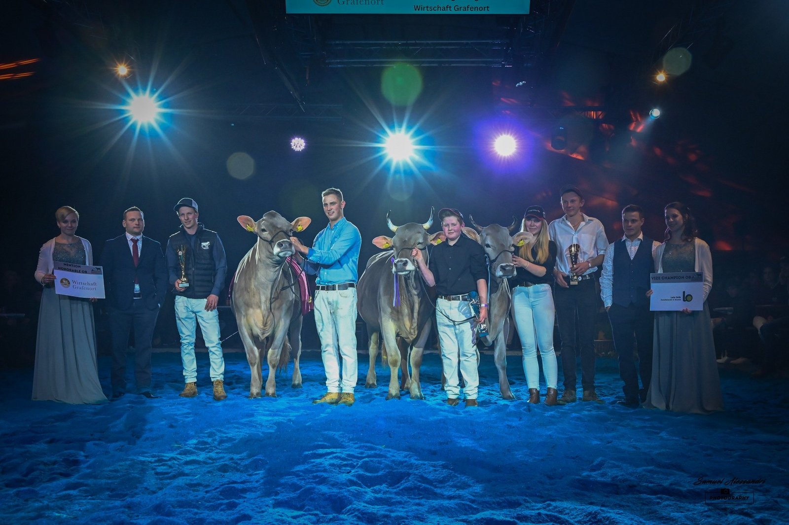 Kurz vor dem Jahresabschluss fand die Zentralschweizer Rindernightshow statt. Nach einem Unterbruch von sechs Jahren organisierten die Ob- und Nidwaldner Jungzüchter die Rinderausstellung auf dem Areal Chilcherli beim Flugplatz Alpnach. Das OK unter der Leitung von Präsident Fabian Hurschler durfte eine grosse Zahl an Besuchern und Zuchtinteressierten aus dem ganzen Braunviehgebiet begrüssen. Nicht nur die Zuschauer hatten teils lange Anfahrtswege, auch einzelne Ausstellungstiere kamen von weit her. So zum Beispiel Bärtsch’s BS Huge Sg Ulessa von Flurin Bärtsch aus Furna GR, welche nach ihrer Ehrenerwähnung an der Junior Expo Aargau vor gut sechs Wochen nun auch in Alpnach gefiel. Ulessa überzeugte einmal mehr und gewann ihre starke Abteilung vor Studefuchs Sinatra Sangria von Simon Gwerder, die Vize Miss der Schwyzer Junior Show.
