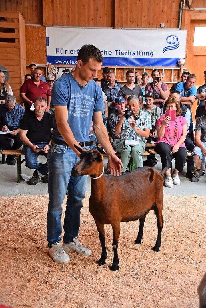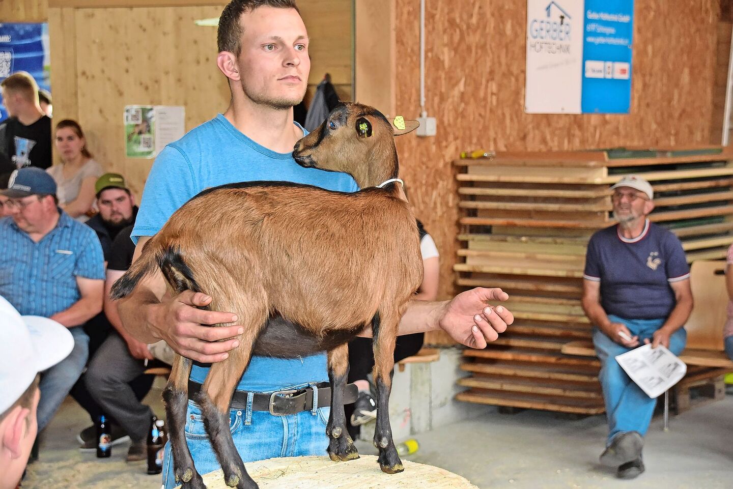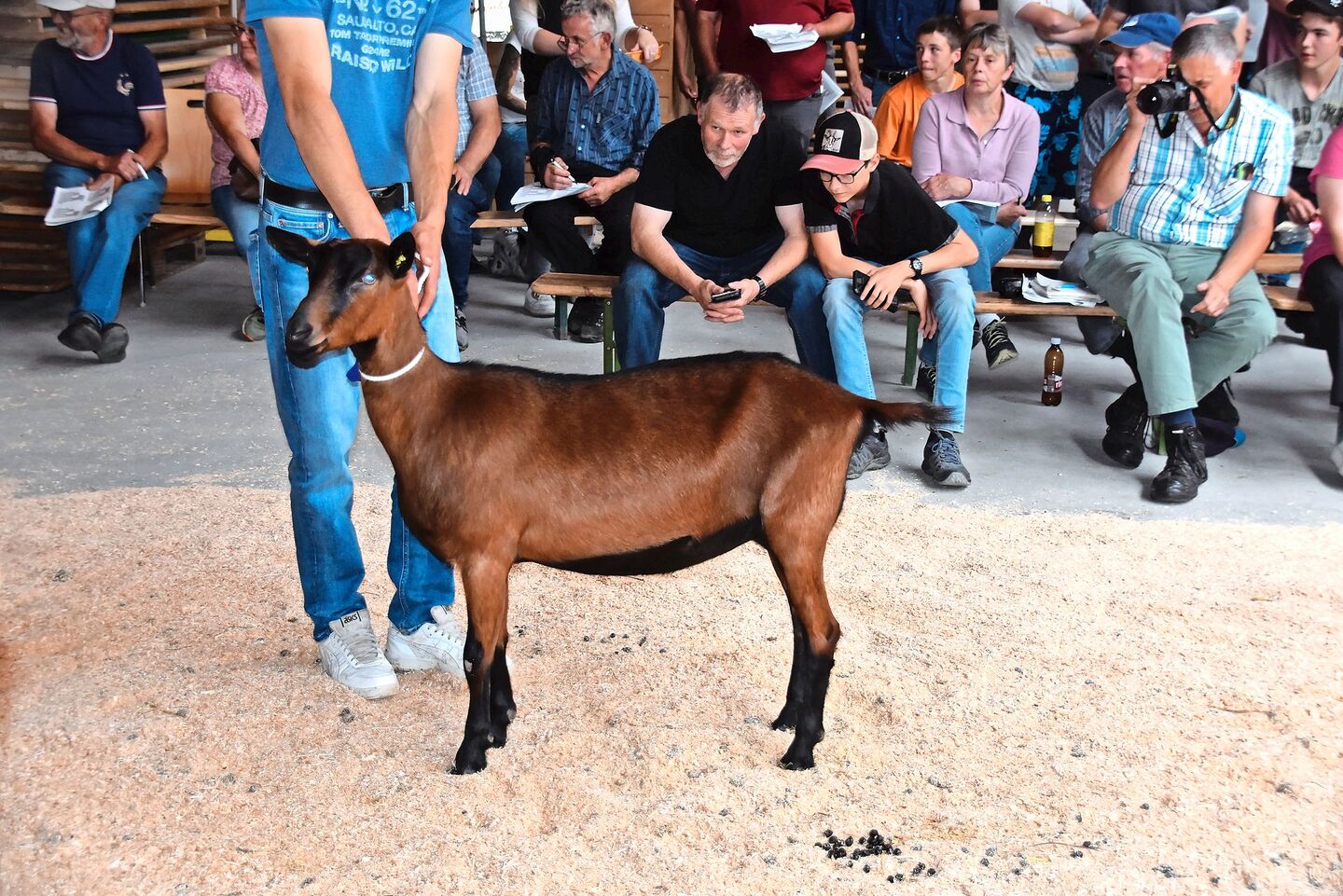 Grosse Stimmung kam auf, als mit Katalognummer 59 die Ziege Wonderful, geboren am 22. Januar 2024, den Ring betrat. Die junge Standmann-Tochter hat in allen Positionen die Noten 4, das Maximum in ihrem Alter. Die wunderschöne Schauziege holte diesen Frühling an der Ziegenausstellung in Bulle den Junior-Schöneutertitel. Ihr Hintereuter könnte in der Breite und im Abschluss nicht besser sein, das sahen auch die Ziegenzüchter so.