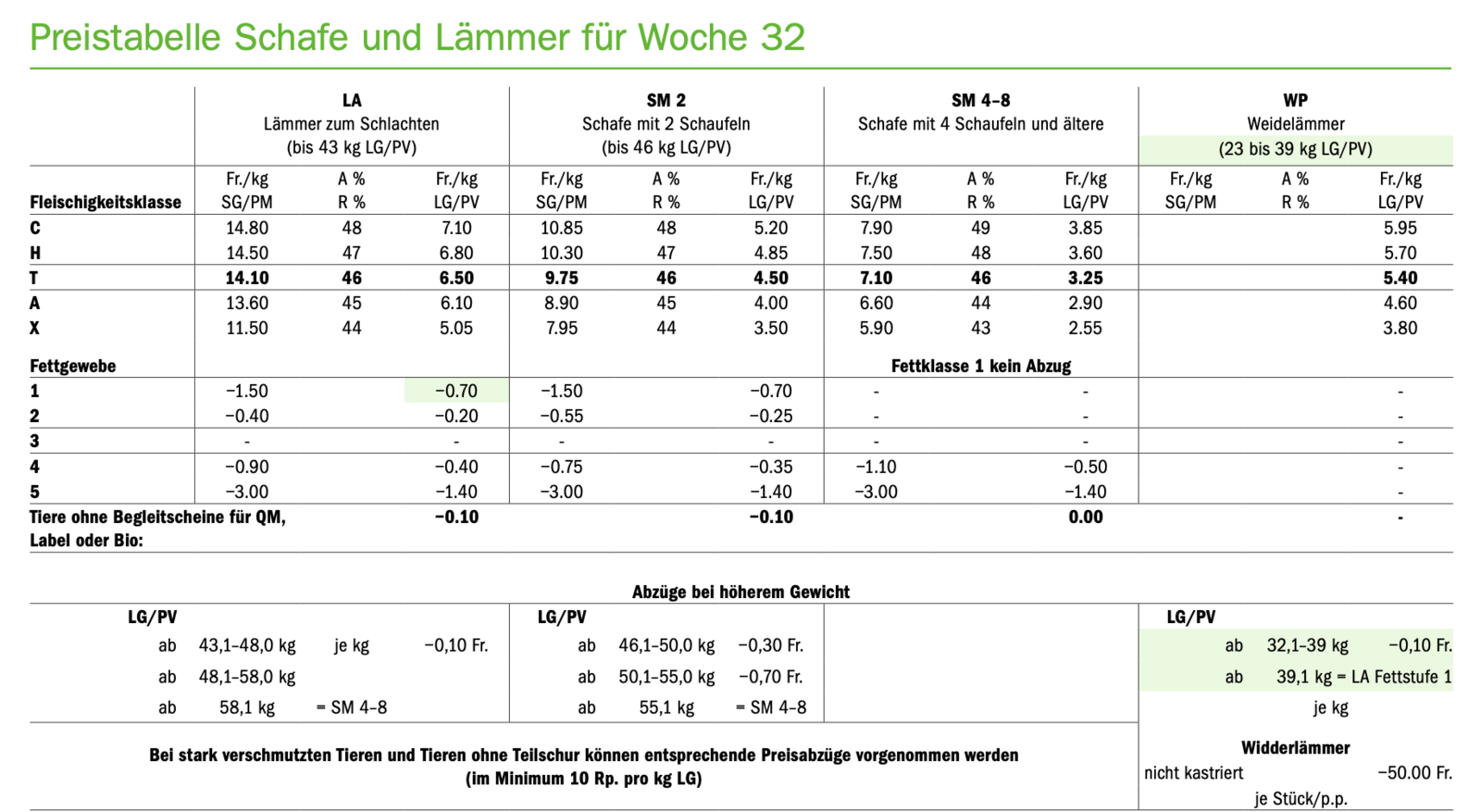 Bald kommen die ersten Schafherden von den Alpen runter und mit ihnen auch Weidelämmer, die das Schlachtgewicht noch nicht erreicht haben. Vielfach haben sie jedoch das fruchtbare Alter schon erreicht und können somit die weiblichen Tiere in der Herde bereits gedeckt haben. Für unkastrierte Bock-Weidelämmer wurden bisher auf öffentlichen Märkten 20 beziehungsweise 25 Franken in Abzug gebracht. Jetzt wurde der Tarif…