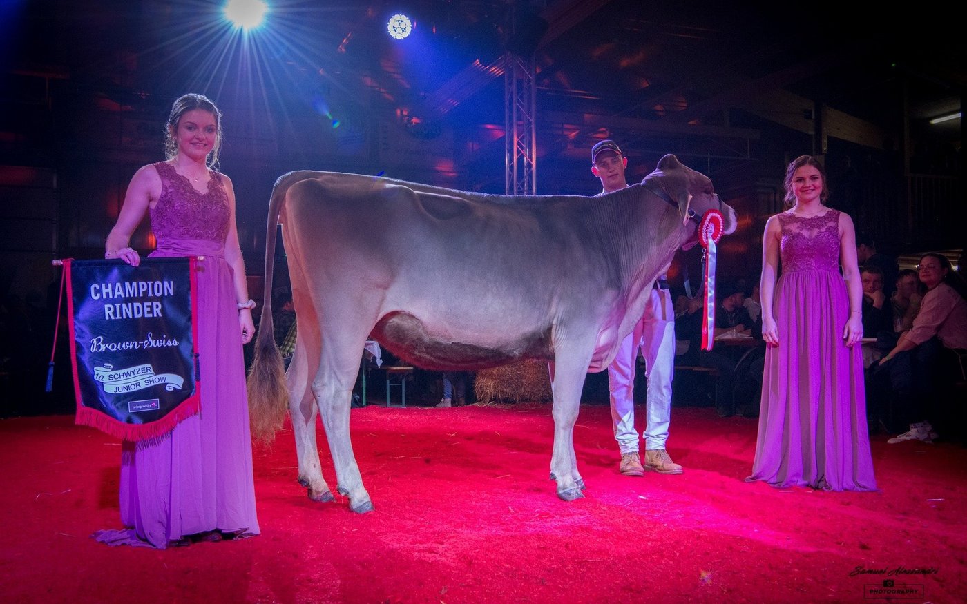 Bei den Brown Swiss Rindern holten die Muotathaler Jungzüchter einen Doppelsieg. Fabian Betschart stellte mit Gislerwaid Calvin Salvina die Champion, Simon Gwerder mit Studefuchs Sinatra Sangria die Vize. Janick von Rickenbach, Steinerberg komplettierte mit Pete Philippa das Podest. Auch bei den Holstein-Rindern präsentierte ein Muotathaler Jungzüchter das schönste Tier. Claudio Föhn holte mit der imposanten vomWeidhof Bad Dina den Sieg. Dina ist keine Unbekannte, so wurde sie Ende November an der 8. Ostschweizer Rindernightshow bereits Supreme-Champion über alle Rassen. Auch zur Vize Champion wurde ein Tier mit dem Präfix vomWeidhof gekürt: Chief Halleluja von Angela Steiner, der Präsidentin der Schwyzer Jungzüchter, gefiel dem Experten Dani Gisler. Honorable Mention wurde wie schon an der letzten Junexba in Mümliswil die elegante AL.Swiss Chief Dream-Love von Alain Lüthi, Pfäffikon.