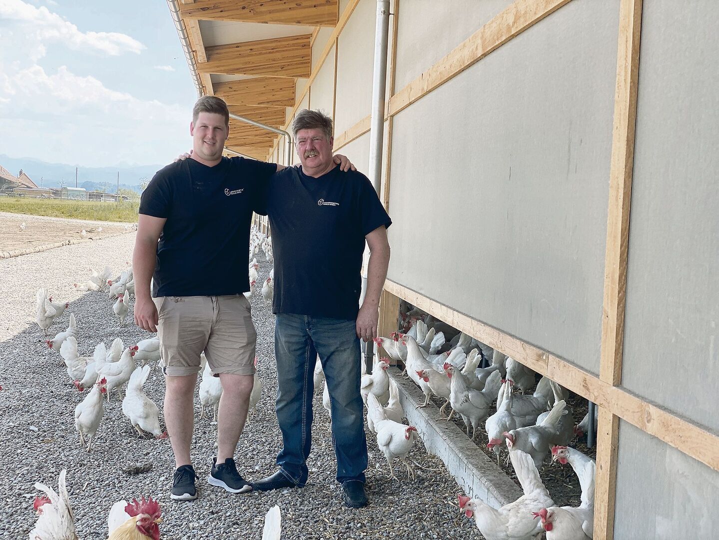 «Wir haben 18 000 Angestellte», scherzt Fritz Herren. Seit 1997 hält der Landwirt aus Neuenegg BE Legehennen. Bisher waren es 10 500 Tiere. Der jüngere Sohn, Marc, absolvierte die Ausbildung als Geflügelzüchter und stieg vor rund zehn Jahren in den Betrieb ein. Er wollte zuerst etwas anderes lernen und es brauchte etwas Überredungskunst vom Vater. Doch bald nahm ihm die Landwirtschaft den Ärmel rein und heute…