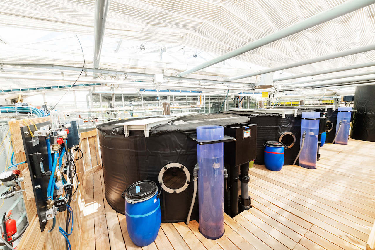 Die Anlage in Wädenswil ZH ist mit viel Technik ausgerüstet: eine Wasseraufbereitungsanlage schliesst den Kreislauf von Zu- und Abfluss in die drei grossen Becken, die zusammen 50 Kubikmeter Wasser fassen. Das Abwasser wird von den Ausscheidungen der Fische gereinigt, entkeimt und mit Sauerstoff angereichert zurück ins Bassin geführt.