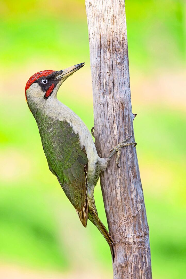 Dank seiner eher ungewöhnlichen Färbung und einer Körperlänge von bis zu 33 cm fällt ein Grünspecht deutlich mehr auf als die kleine Schwanzmeise. Oft verrät sein lachender Ruf die Anwesenheit eines Grünspechts. Im Flug ist er daran erkennbar, dass er sich wellenförmig durch die Luft bewegt und zwischen den Schlägen seine Flügel ganz an den Körper anlegt. Grünspechte bevorzugen halboffenes Gelände, denn zur Suche nach Ameisen halten sie sich oft am Boden auf. Droht dort Gefahr, ziehen sie sich schnell in die sichere Höhe eines Baums zurück.