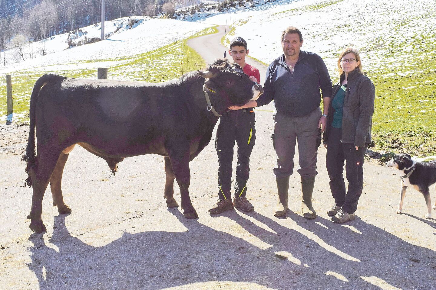 Stier Ignaz gibt sich genüsslich der elektrischen Kuhbürste hin. «Sein Lieblingsspielzeug», bemerkt Andreas Wälli. Der Landwirt steht im Laufhof, um ihn herum verweilen sich etwa 14 Grauviehkühe. Sie geniessen die Sonne. Auf die Weide können sie noch nicht, denn dort liegt noch der Schnee von Anfang April. «Grauvieh ist genügsam, hat einen guten Futterinstinkt und eine gute Futterverwertung», fährt Wälli fort,…