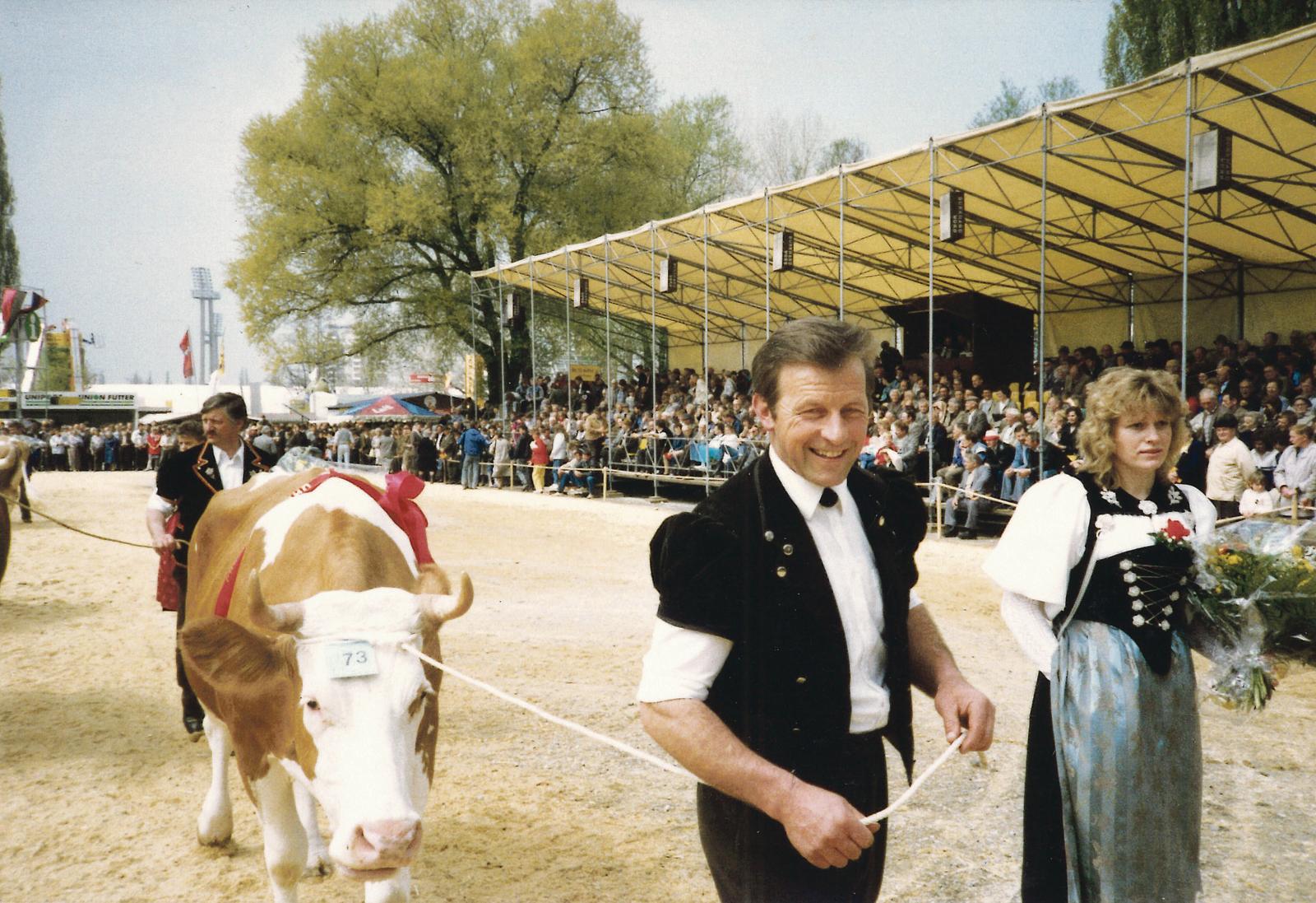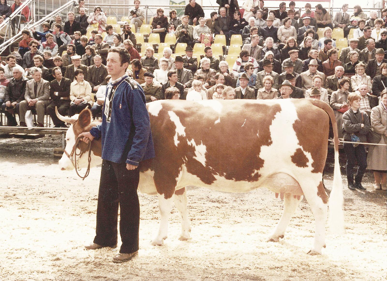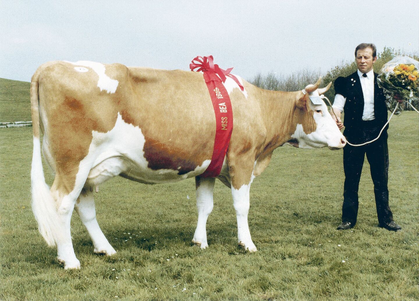 Vier Kategorien, 90 Kühe und eine Klassierung unter Ausschluss der Öffentlichkeit – so präsentierte sich die erste Bernische Eliteschau 1985. Mittendrin Alfred Krummen, der Züchter aus Marfeldingen. Er stellte damals die erste Miss BEA, die Miss BEA, die Knospe hiess. Heini Knospe war eine RH-Kuh, eine Kuh mit 62,5 % RH-Blutanteil, was heute zur SF-Rasse gezählt würde.[REL 1] Sorgte für Hühnerhaut Drei Jahre später…