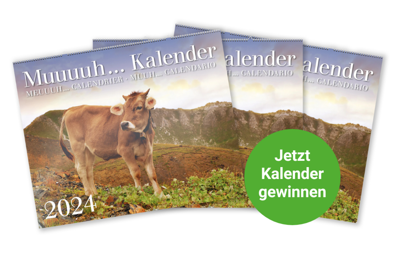 Das Jahr 2023 neigt sich schon bald dem Ende zu. In einigen Tagen startet das neue Jahr und das letzte Kalenderblatt 2023 ist Geschichte. Hängt an Ihrer Wand noch kein Kalender fürs 2024? Dann haben wir die ideale Gelegenheit: Wir verlosen 3x einen «Muuuuh... Kuhkalender – viel Glück und eine schöne Adventszeit!