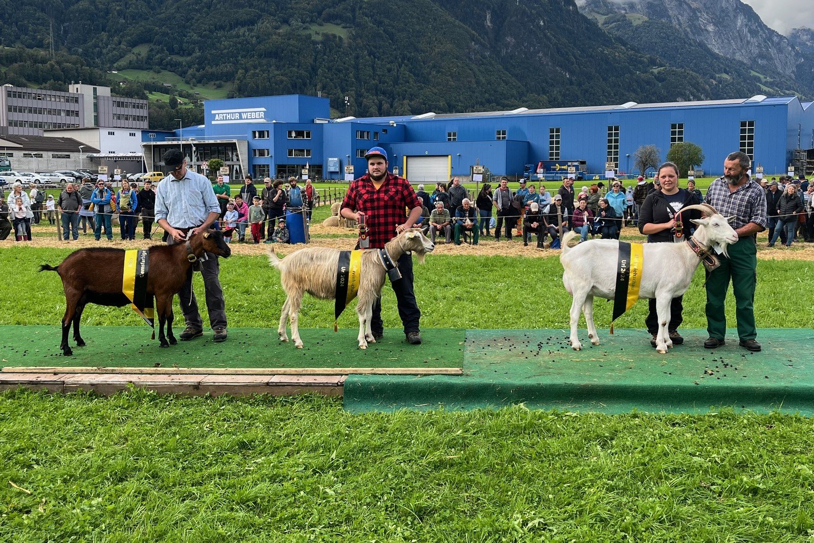 Bei den Ziegen wurden die Missen von drei Rassen gekürt: Mit Delco Dayla von Franz-Xaver Gisler, Schattdorf (Gemsfarbige Gebirgsziegen), Nelli von Ruedy und Damian Kempf, Attinghausen (Toggenburger Ziegen), und Sira von Erwin und Michaela Imhof-Fässler, Isenthal (Saanenziegen), setzten sich sehr korrekte Tiere durch. Ruedy und Damian Kempf und Franz-Xaver Gisler stellten dank je vier erstplatzierten Tiere auch die Siegerkollektionen.