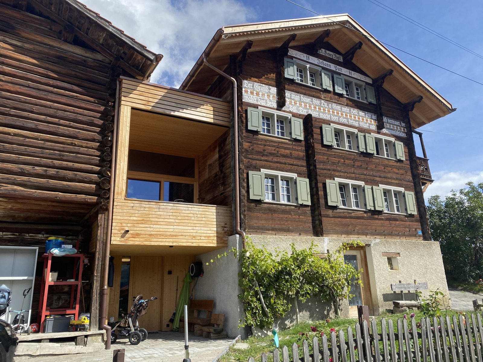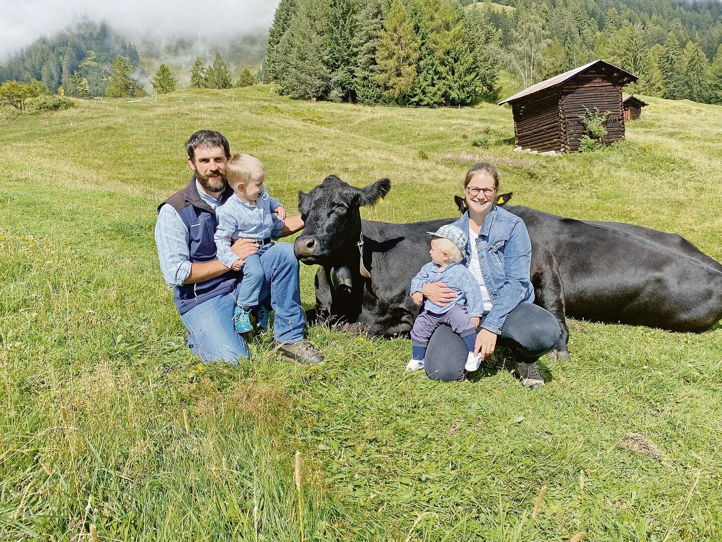 Von Elias sind nur noch die Beine zu sehen. Mit dem Oberkörper ist der 3-Jährige in die blaue Tonne gekrochen, in der das Hühnerfutter aufbewahrt wird. Die Eltern haben ihm erlaubt, das Geflügel mit einem Becher Futter anzulocken, damit die Tiere von der weitläufigen Wiese zum Gatter kommen. Elias Eltern Maja Plump und Hans-Andrea Patt bewirtschaften auf 1200 Metern über Meer in Castiel GR einen…