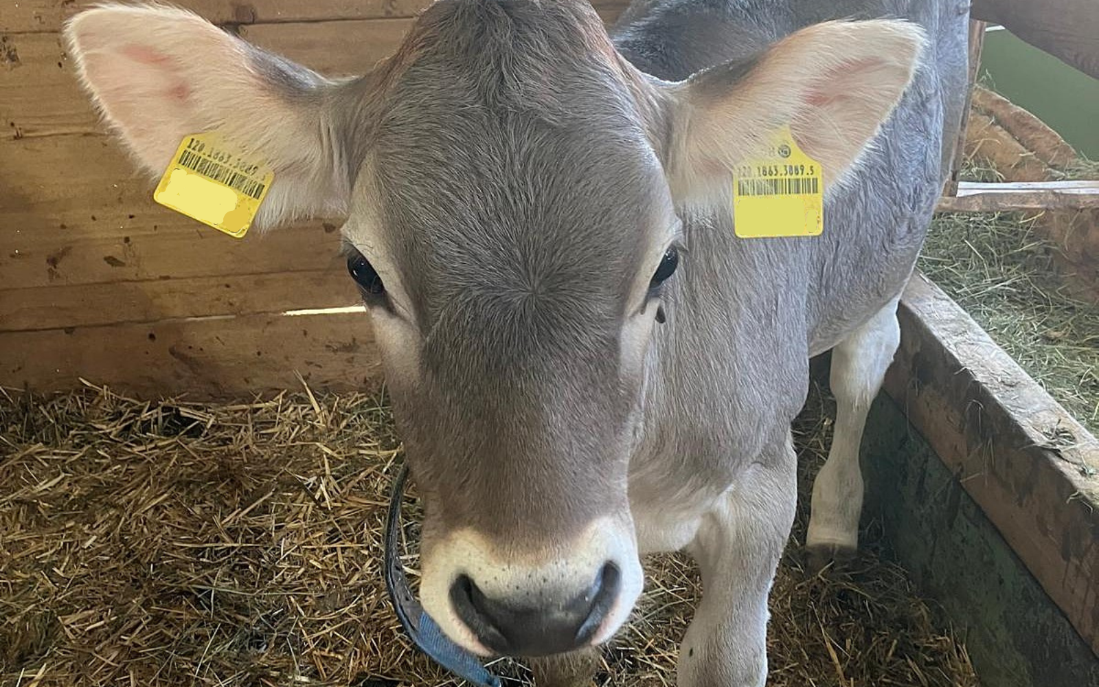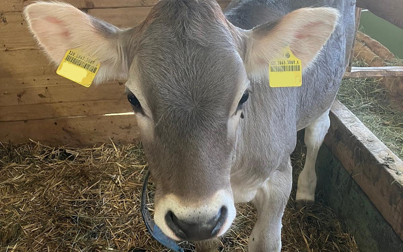 Um herauszufinden, ob die Hornlosigkeit einfach eine Laune der Natur war, oder ob da doch eine genetische Hornlosigkeit vorhanden sein könnte, machte Familie Bürgler bei Unia als Rind eine Spülung und erhielt eine schöne Zahl von Embryonen. Aus den ersten beiden Trächtigkeiten mit diesen Embryonen gab es im Juli 2024 zwei Kuhkälber aus dem Stier Harpune. Eines davon hatte ebenfalls keine Hörner.[IMG 2]